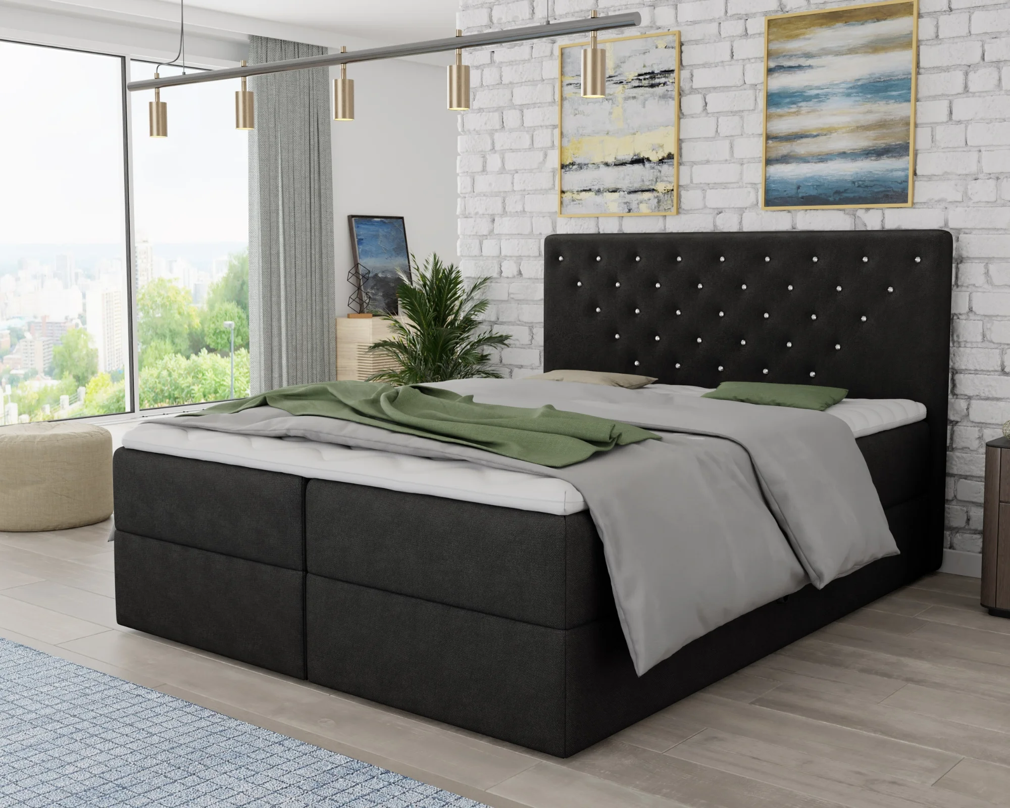 Boxspringbett BETATE mit Strasssteinen, inkl. Matratzen und Topper