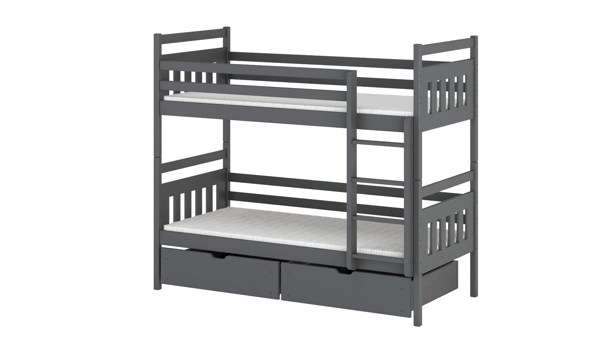 Etagenbett für 2 Kinder ADAM inklusive Lattenrost, Leiter, Bettkasten und abnehmbarer Rausfallschutz unten