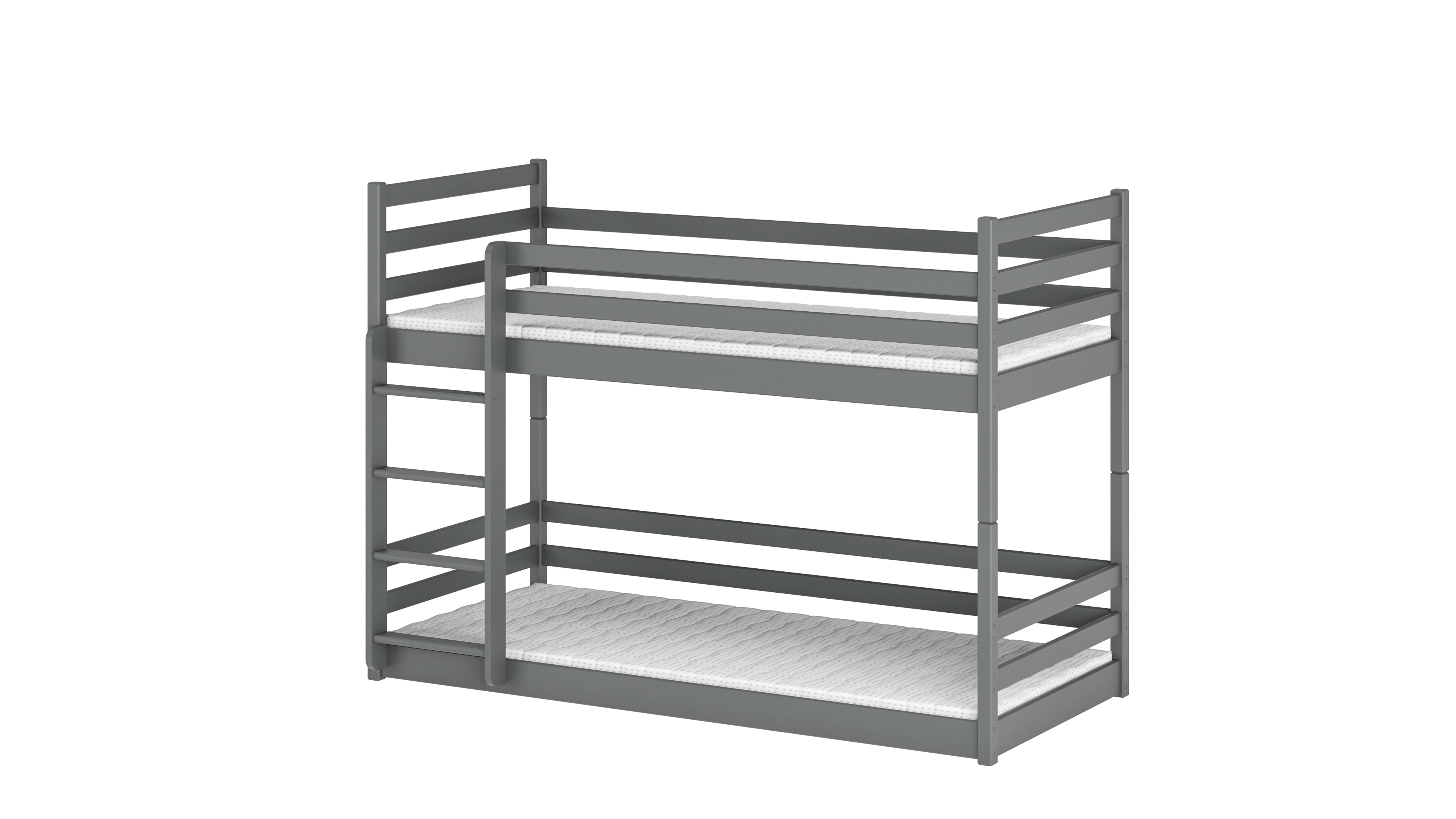 Etagenbett für 2 Kinder MINI Weiß Aschgrau Graphit Kiefer inklusive Lattenrost und Leiter