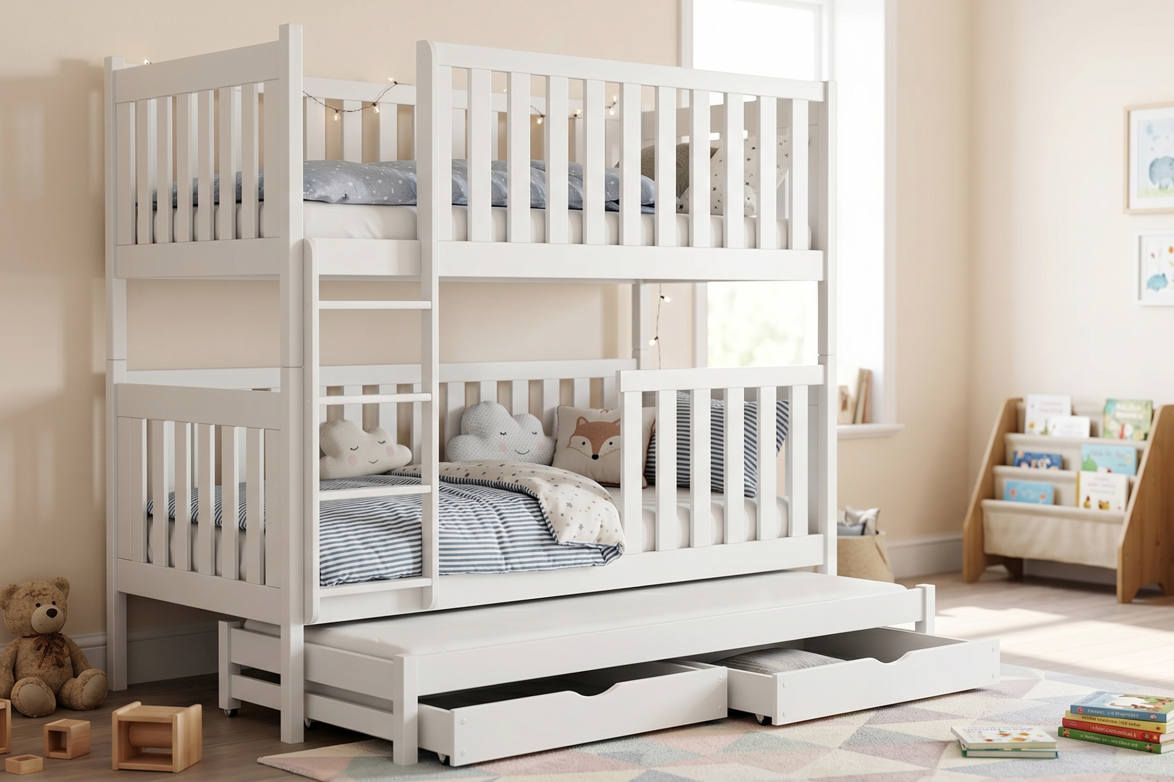 OLIVIA 90x200 Weiß Etagenbett Ausziehbett für 3 Kinder mit Schubladen Deine Möbel