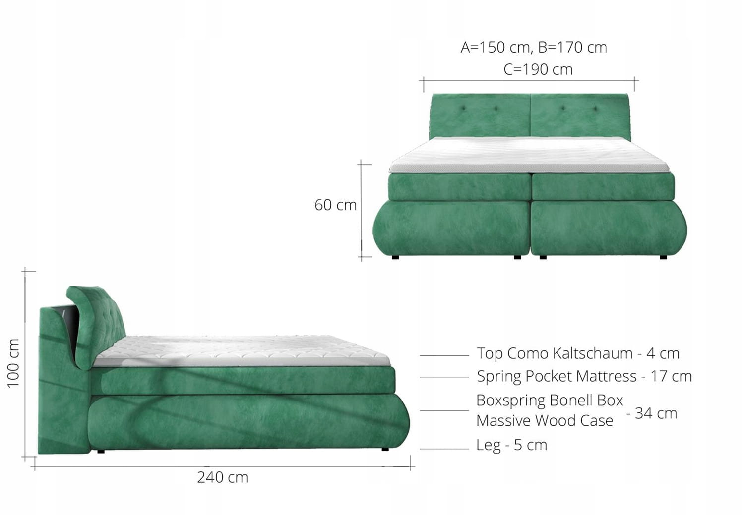 Bitte beachten Sie, dass jedes Boxspringbett eine Sonderfertigung ist.