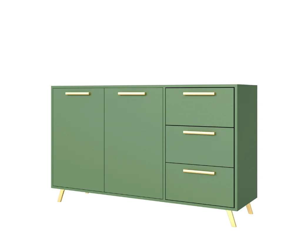 Entdecken Sie die außergewöhnliche Kommode LABOO, die in den angesagtesten Farben erhältlich ist. Sie ist nicht nur ein praktisches Möbelstück, sondern auch ein stilvolles Stück, das Ihrer Einrichtung Charakter verleiht. Die goldenen Beine und Griffe verleihen der Kommode ein elegantes Aussehen und bilden einen schönen Kontrast zu der intensiven Farbe der Fronten.