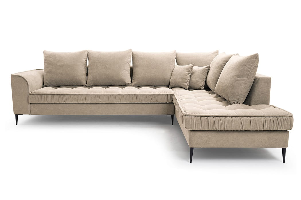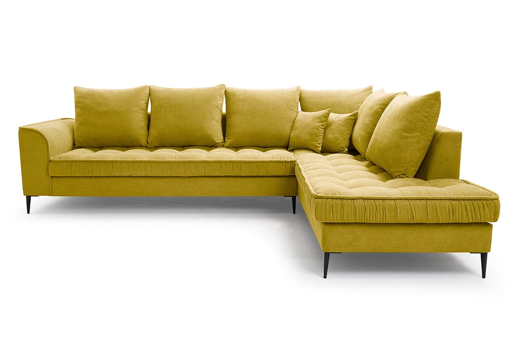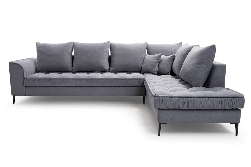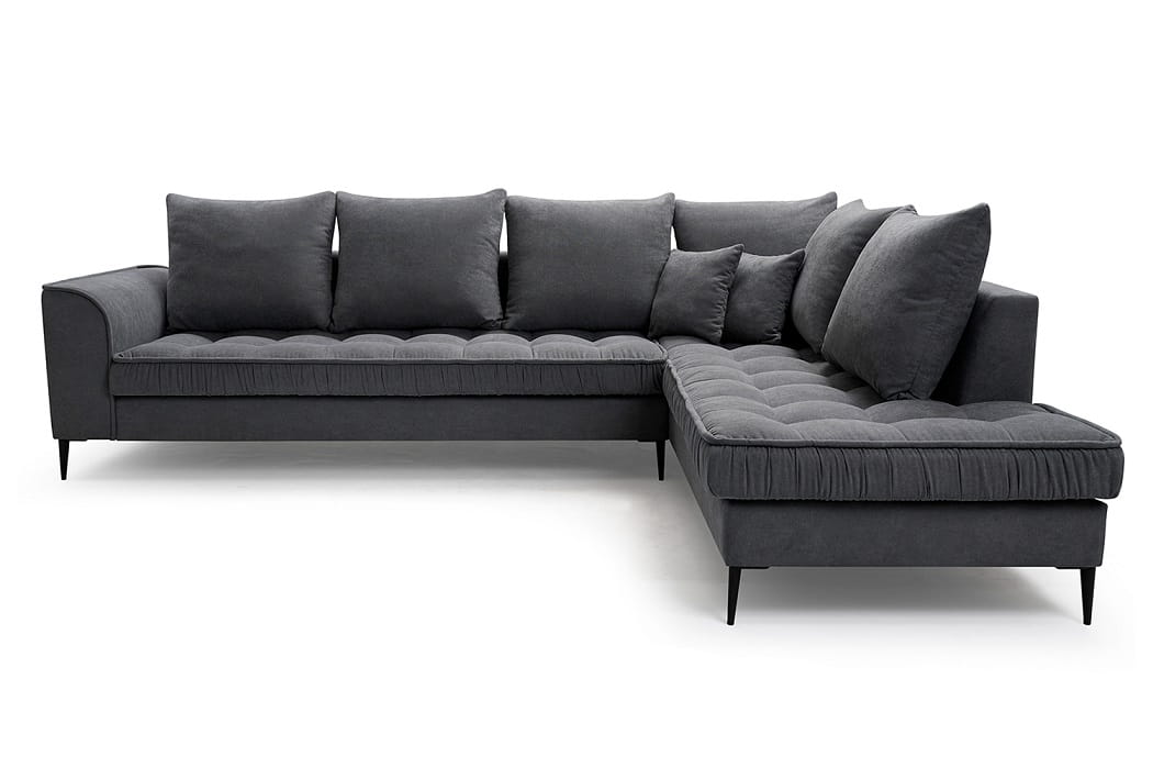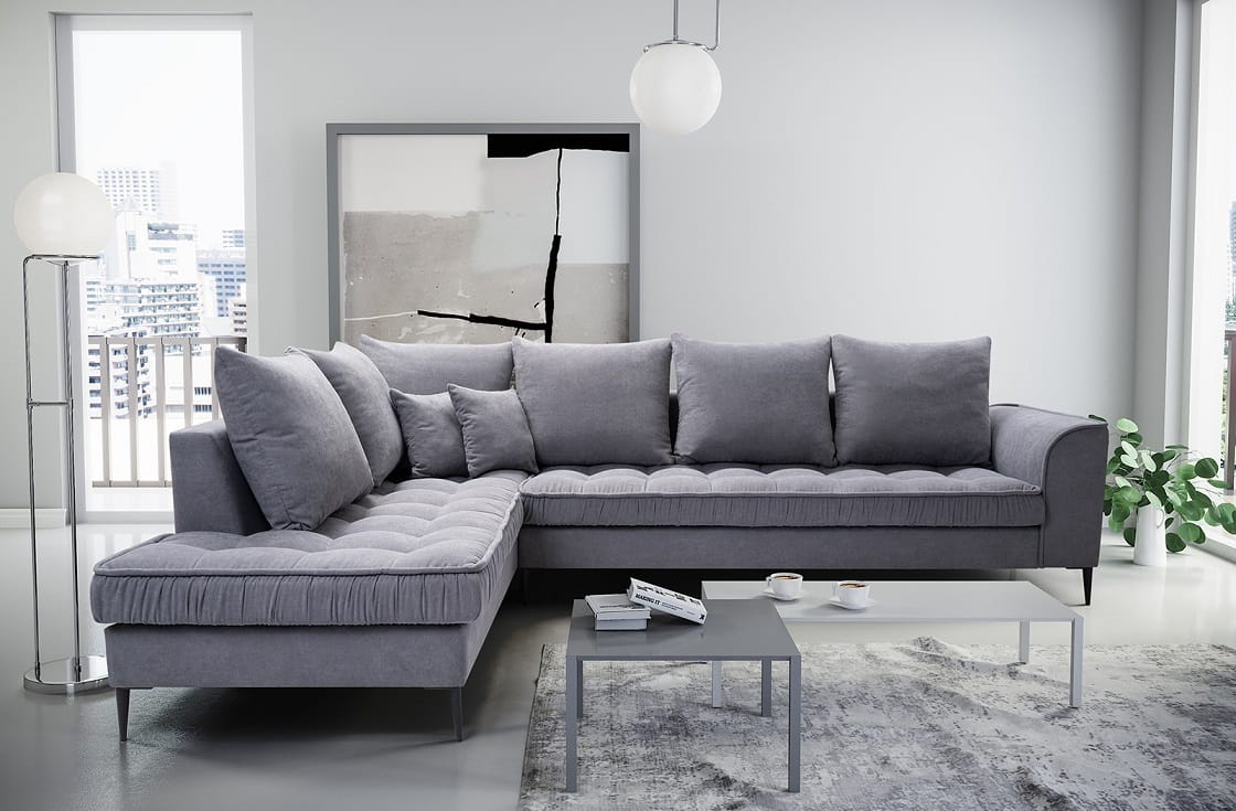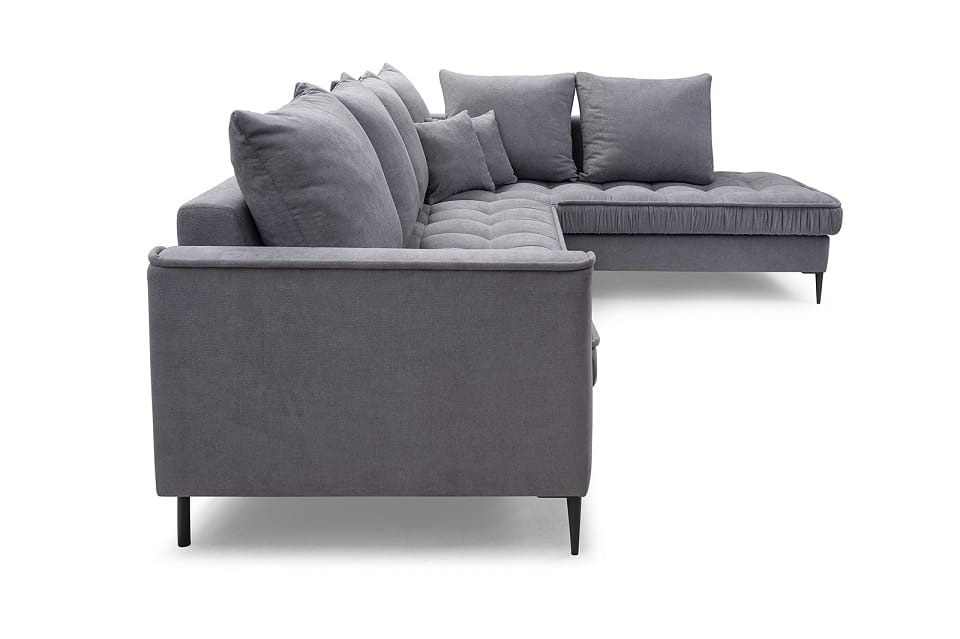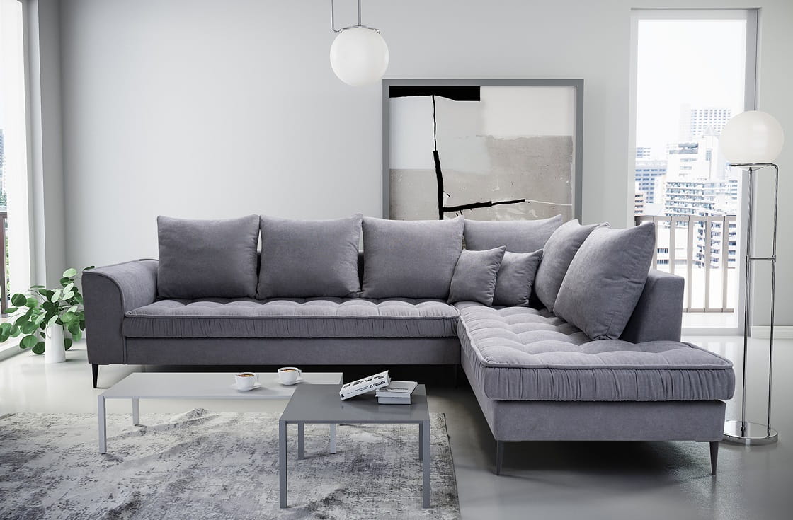 Neben dem interessanten Design, das in einem modernen und minimalistischen Stil passt, beeindruckt die Couch mit Qualität und Funktionalität. Das langlebige Design der Wohnlandschaft wurde mit einer bequemen Sitzfüllung aus verschleißfester Wellunterfederung und flexiblem T30-Schaum kombiniert.