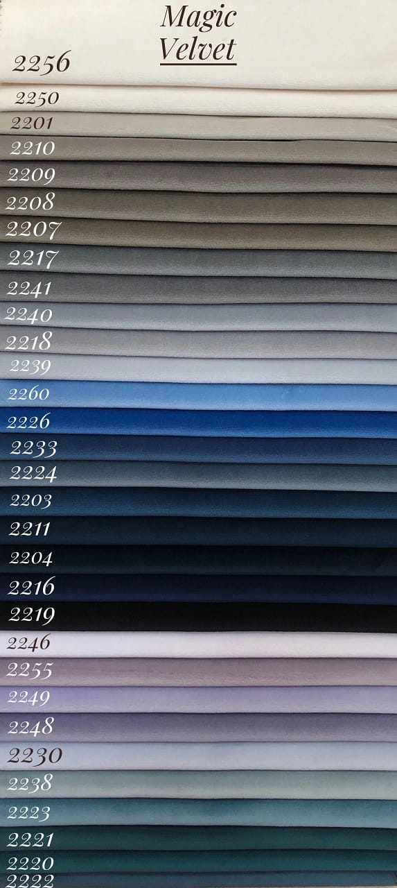 Velour / Samt Magic Velvet: leicht zu reinigen (mit feuchtem Lappen) (CleanBOO+), scheuerfest (60.000 Martindale-Zyklen), schwerentflammbar (Zigarettentest bestanden) und wasserabweisend, lichtecht (5) und pillingarm (5), aus 100 %.Polyester