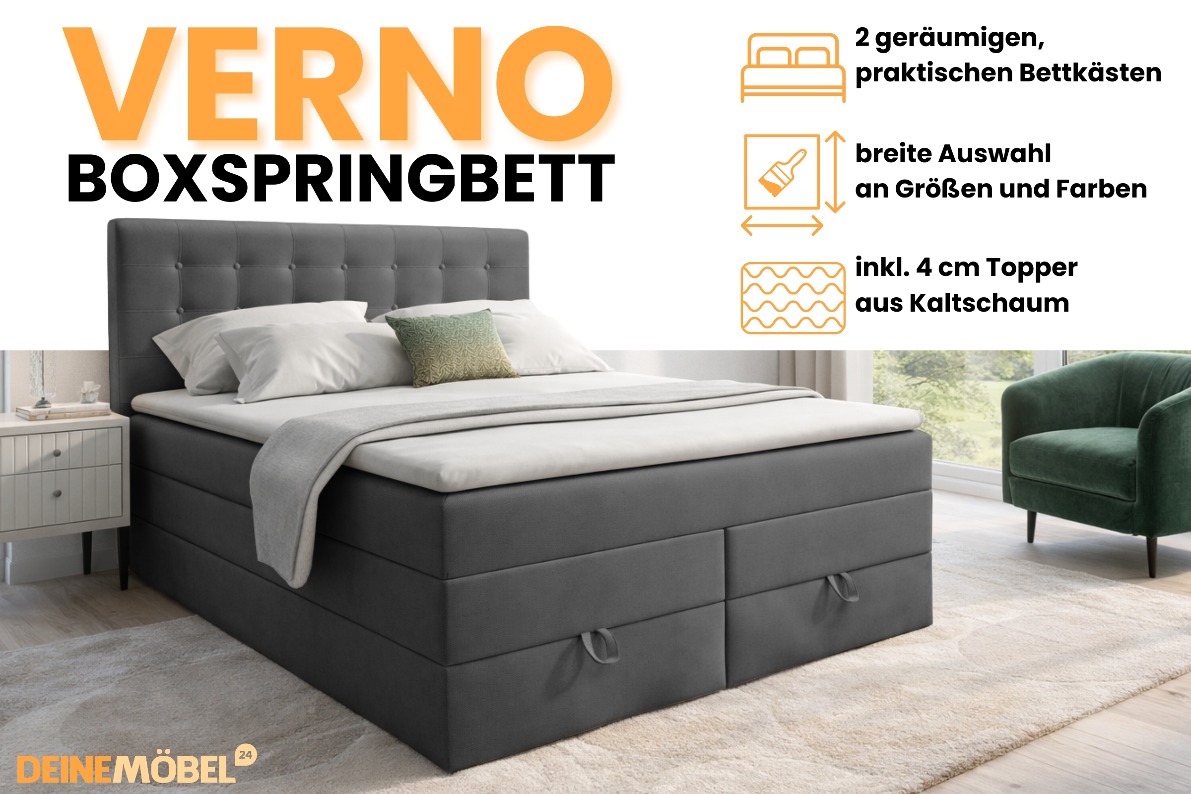 VERNO Boxspringbett mit Bettkasten Deine Möbel
