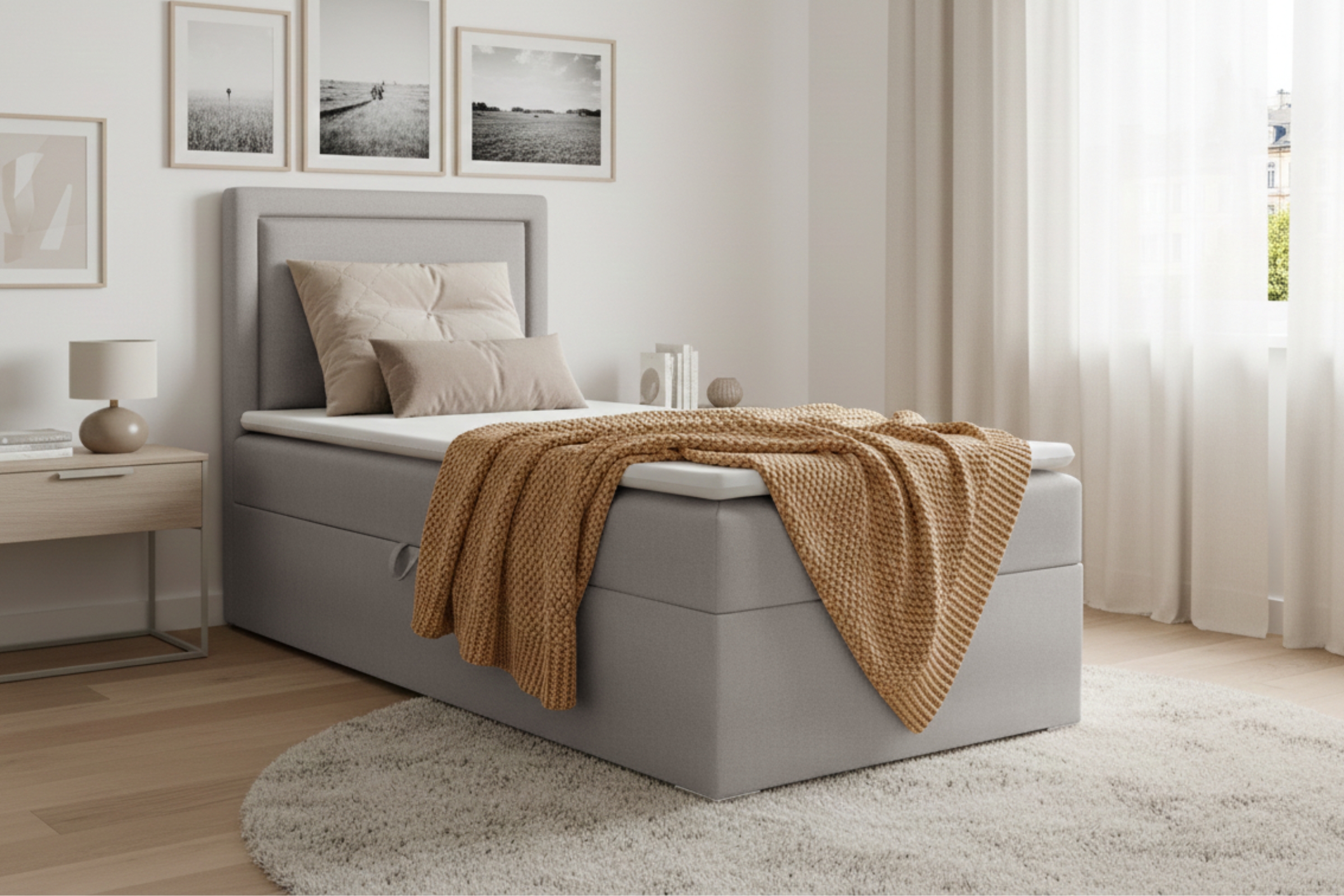 - Stauraum durch seitlich aufklappbaren Bettkasten