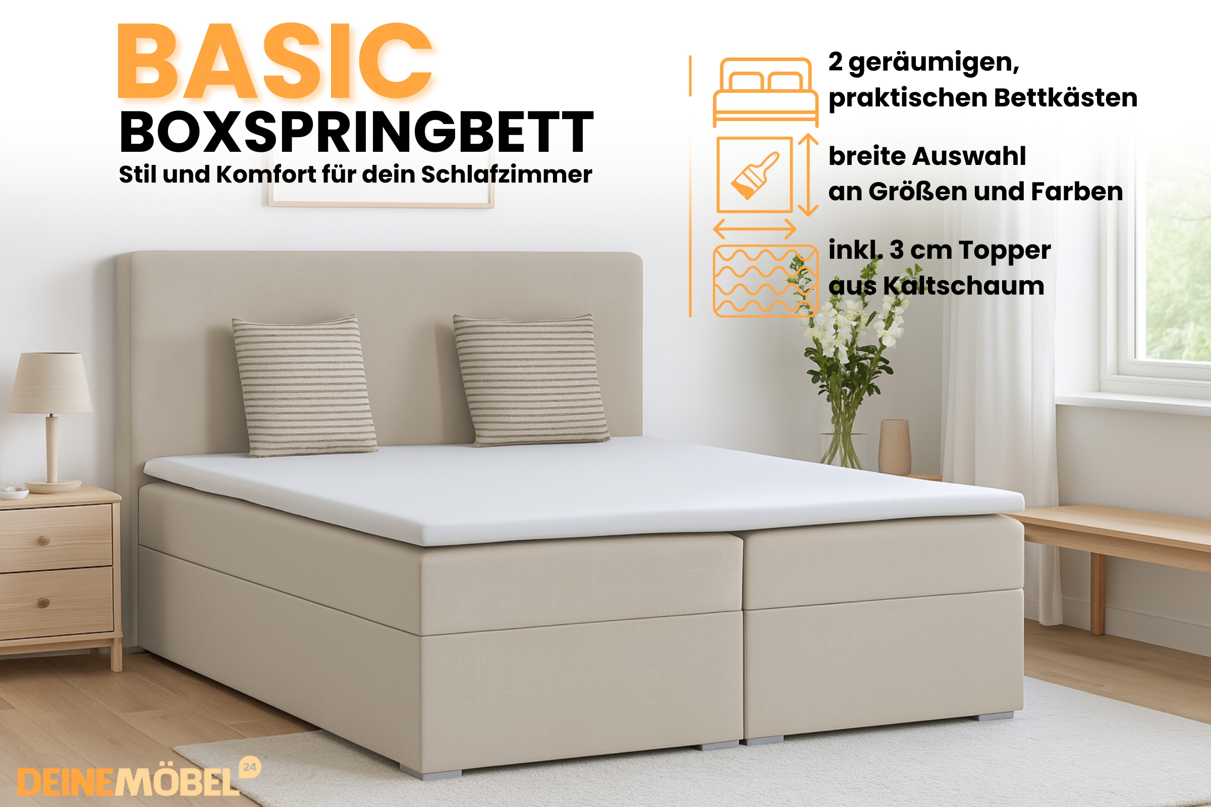 Boxspringbett BASIC – Schlicht, bequem & zeitlos