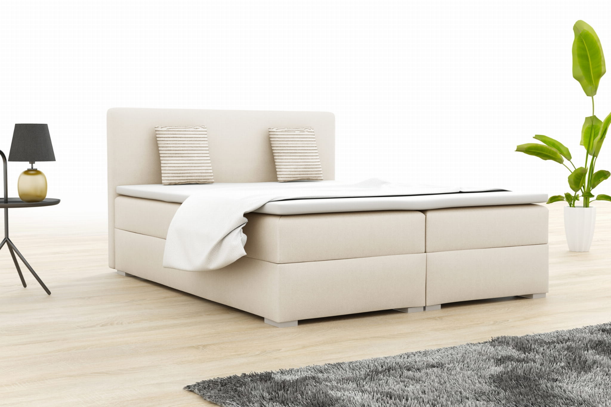 - modernes Boxspringbett mit Bettkasten und Topper