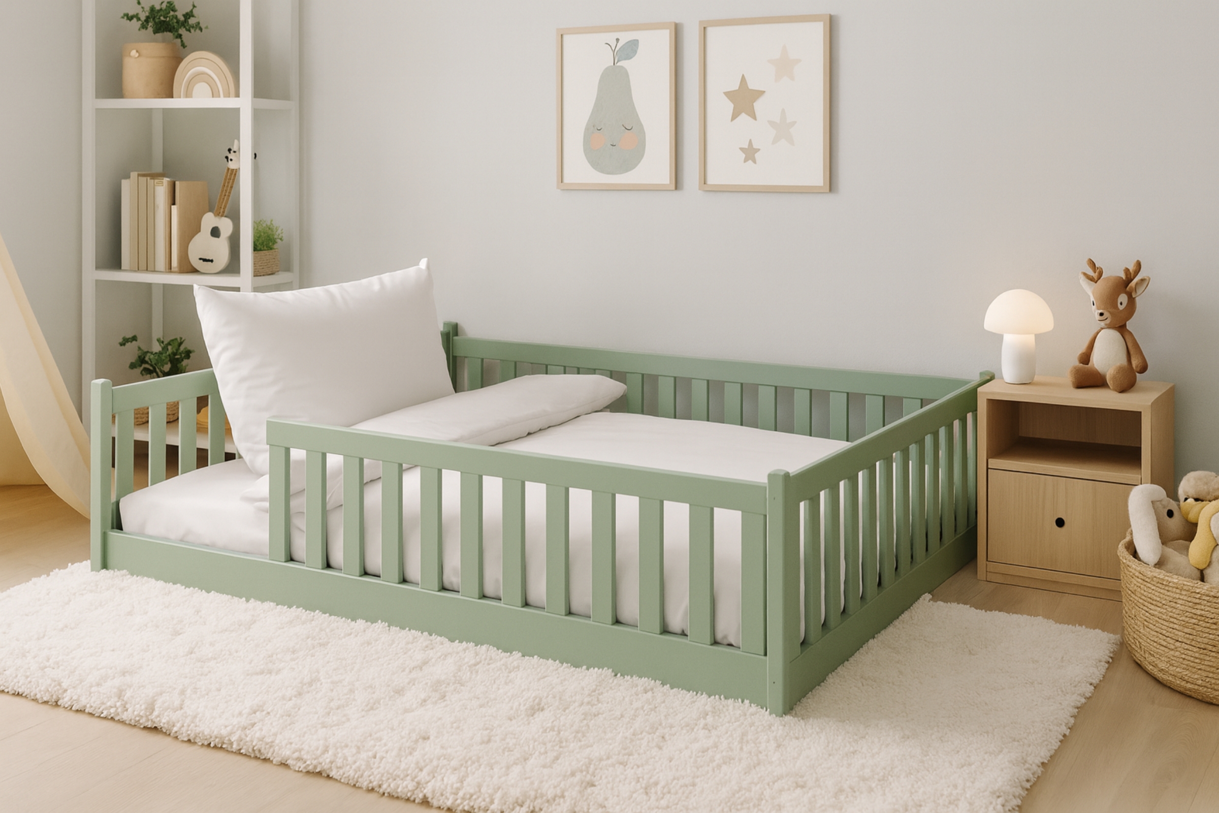 BELMO Olivegrün Bodenbett Montessori mit Rausfallschutz