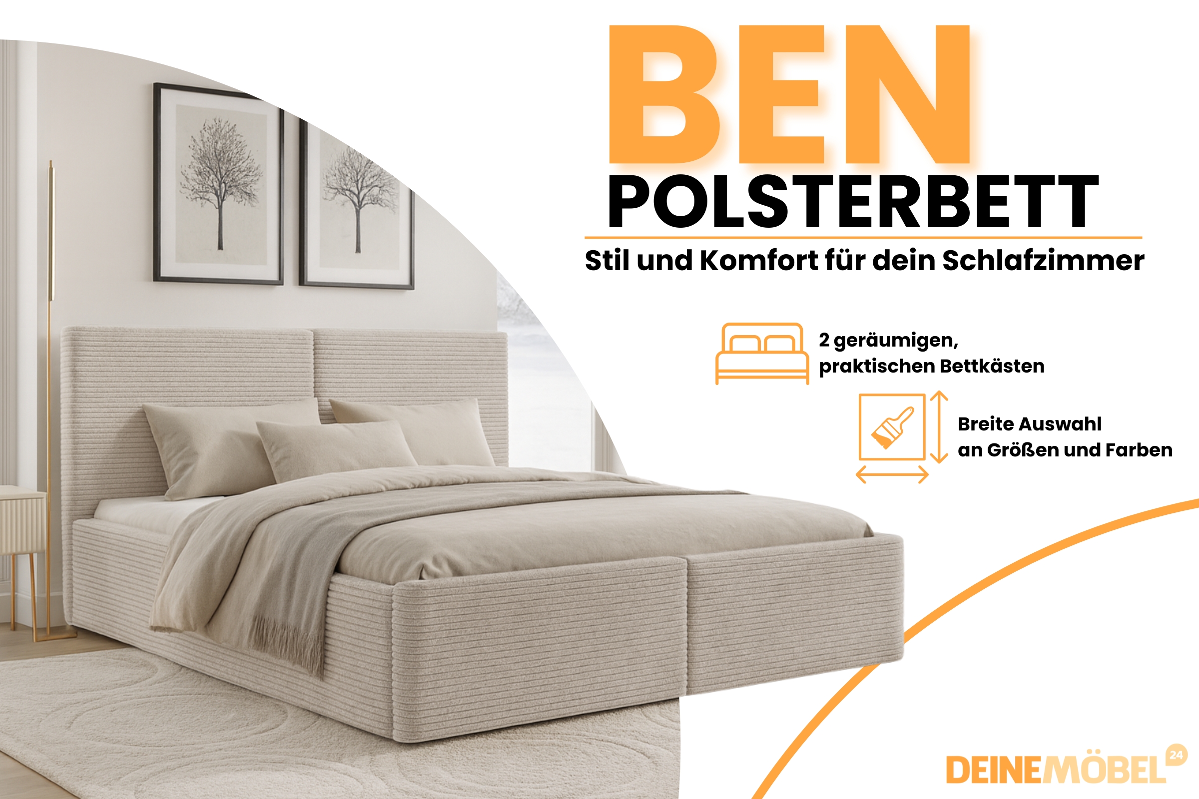 Polsterbett BEN – stilvolles Design, hoher Komfort und durchdachte Funktionalität