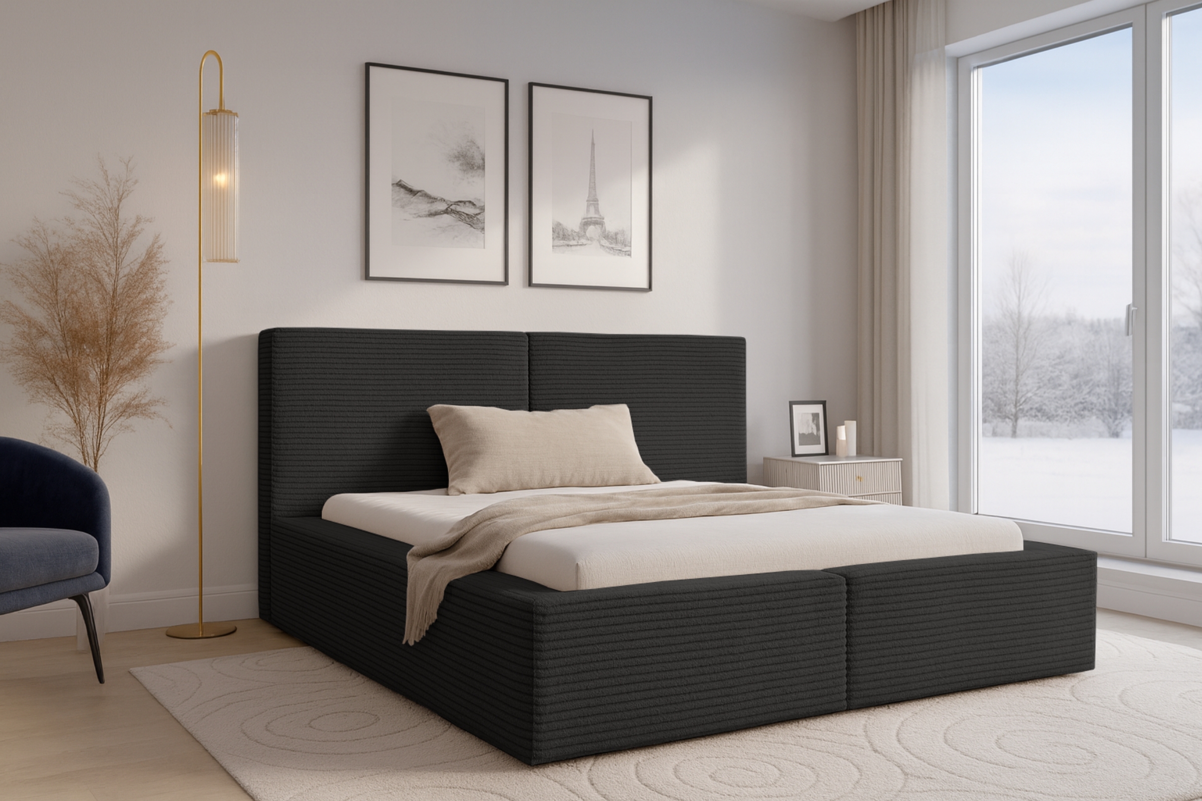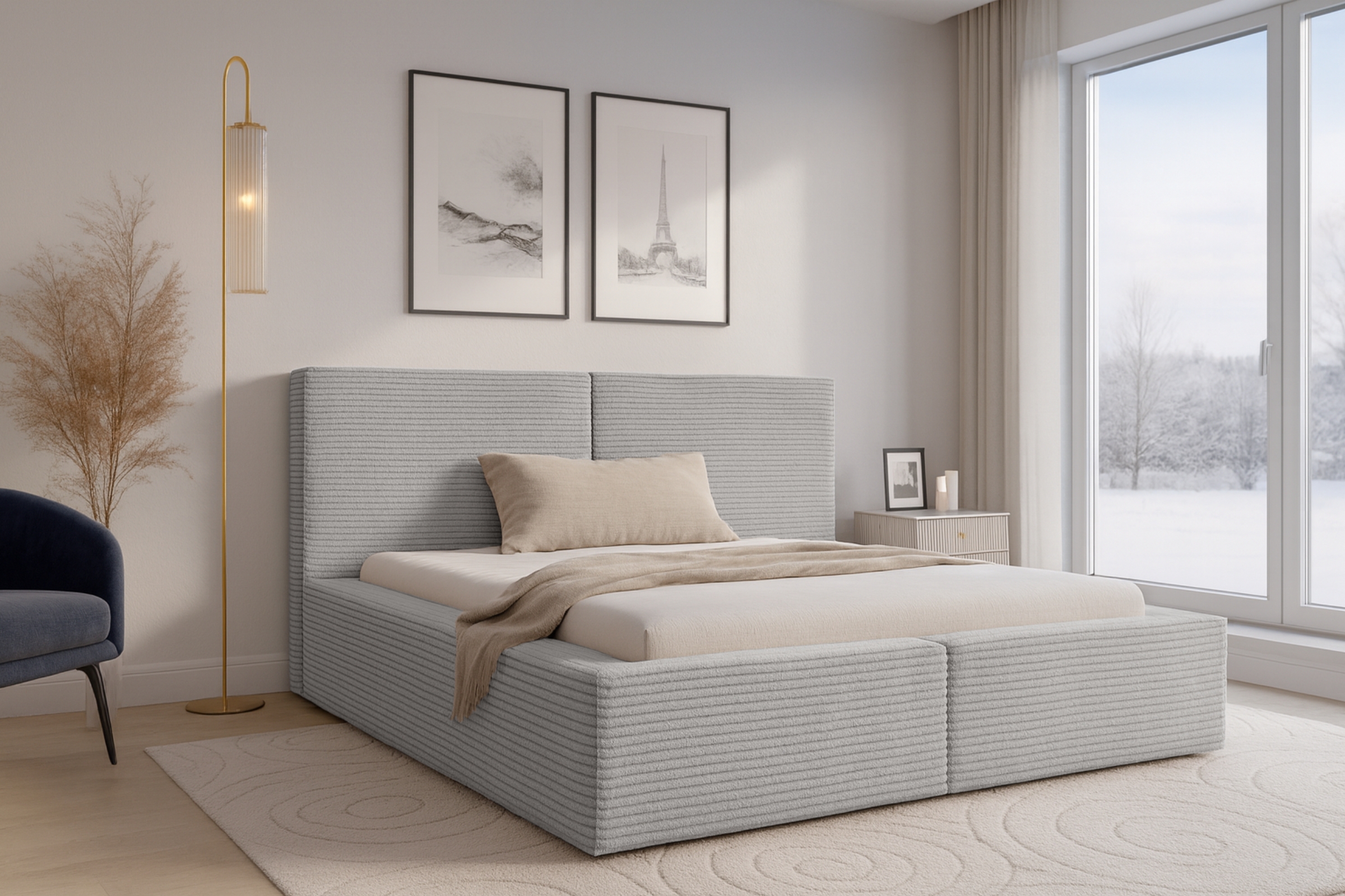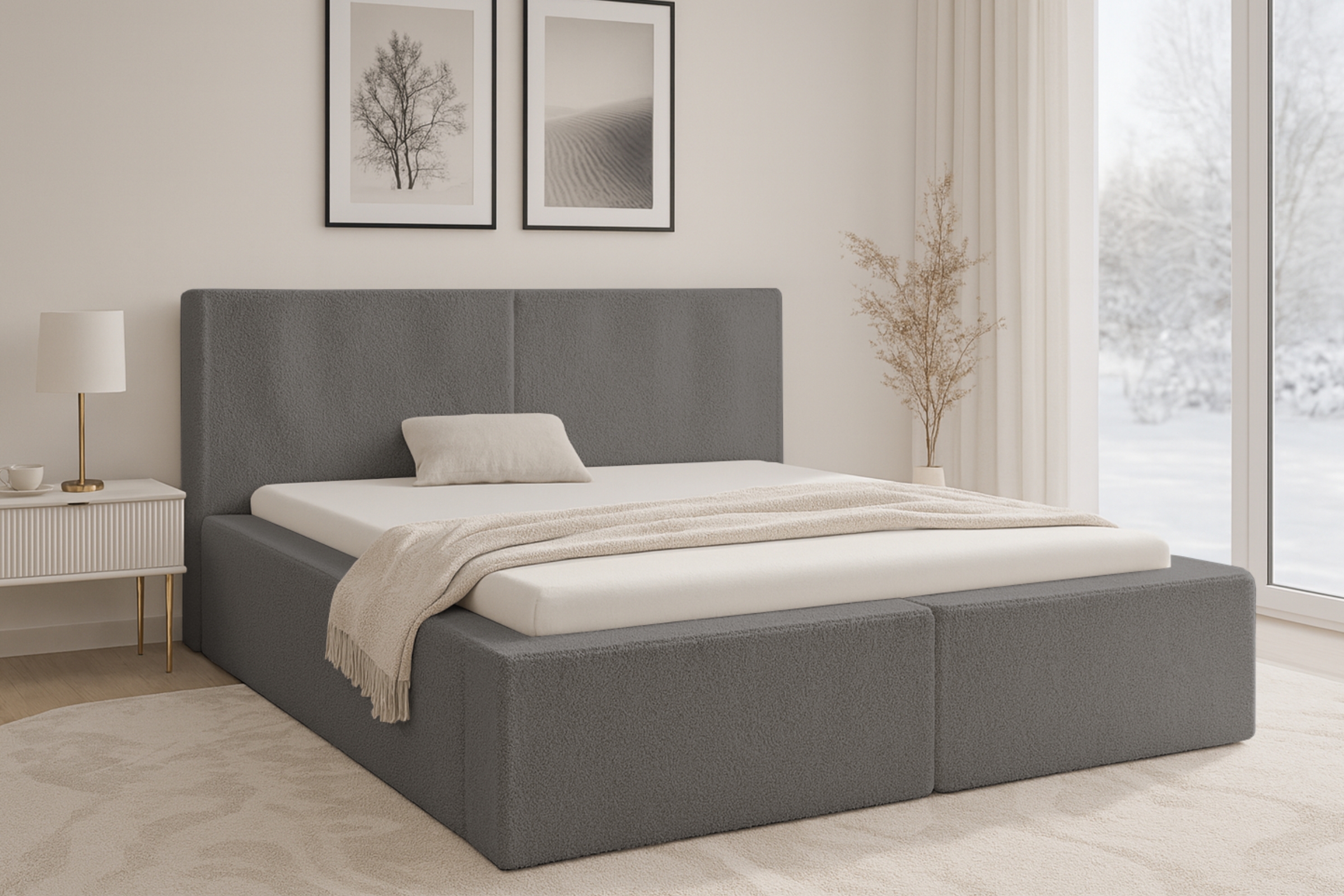 Das Polsterbett BERNO vereint zeitlose Eleganz, weiche Materialien und eine robuste Konstruktion – ideal für jedes moderne Schlafzimmer. Die hochwertigen Stoffoptionen Cord, Bouclé oder Samt verleihen dem Bett eine warme, gemütliche Ausstrahlung und setzen stilvolle Akzente. Mit seiner stabilen Bauweise und der komfortablen Liegehöhe wird BERNO schnell zum neuen Mittelpunkt Ihres Schlafraums.