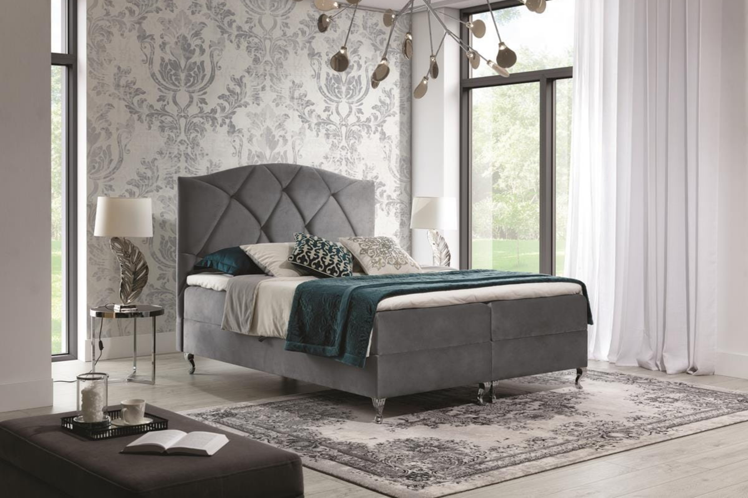 BOSTON 160x200 Velour Monolith 85 Grau Boxspringbett mit Bettkasten Deine Möbel