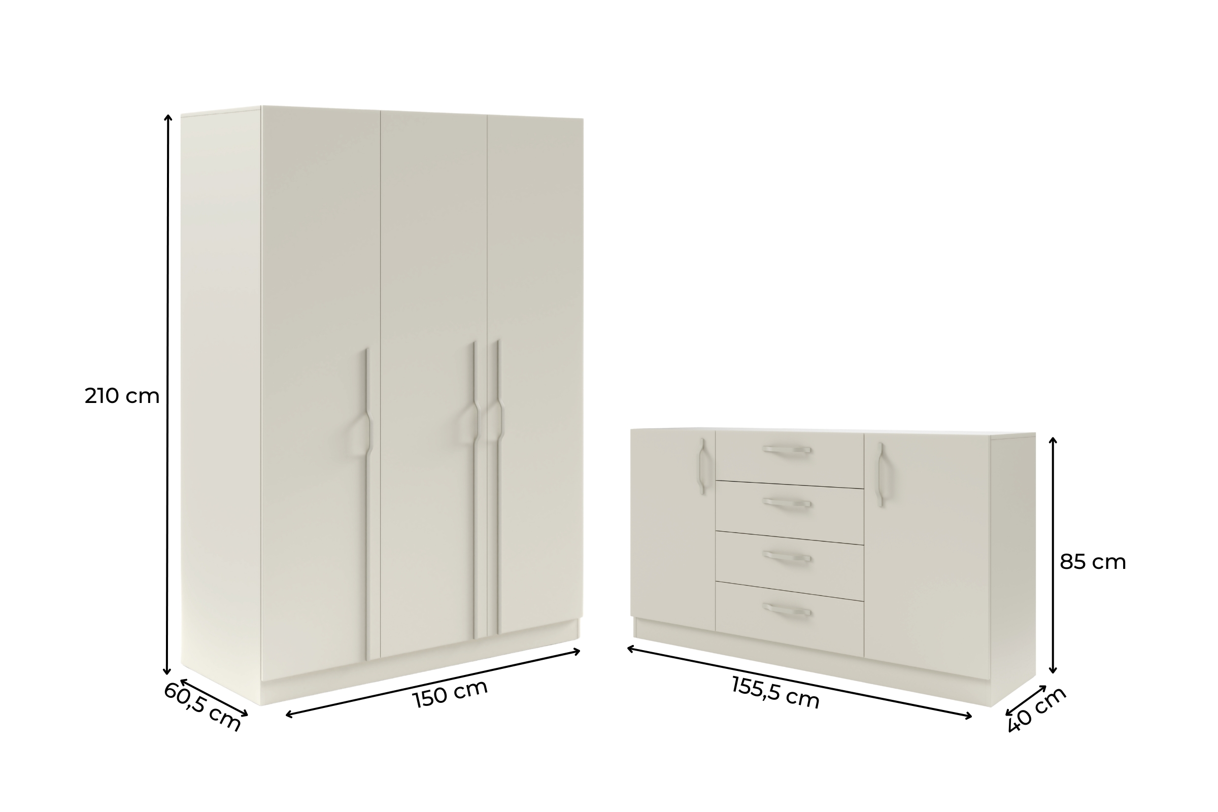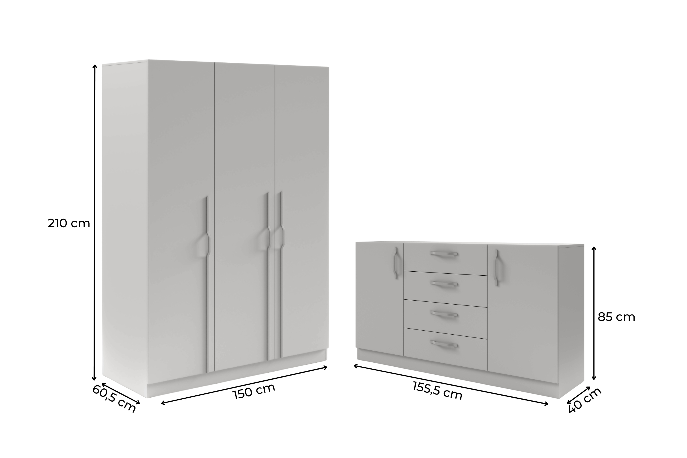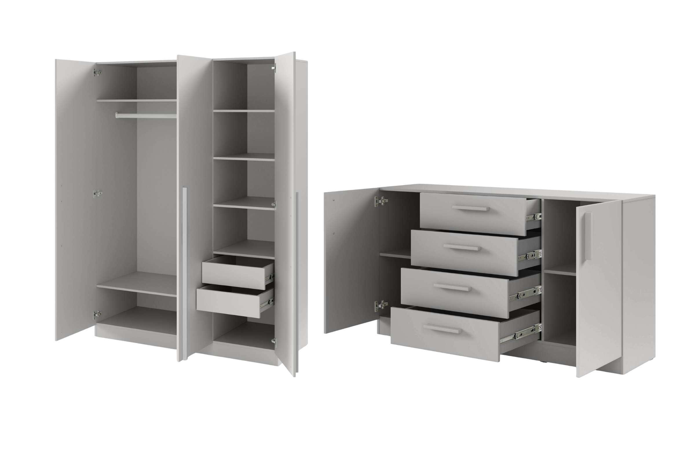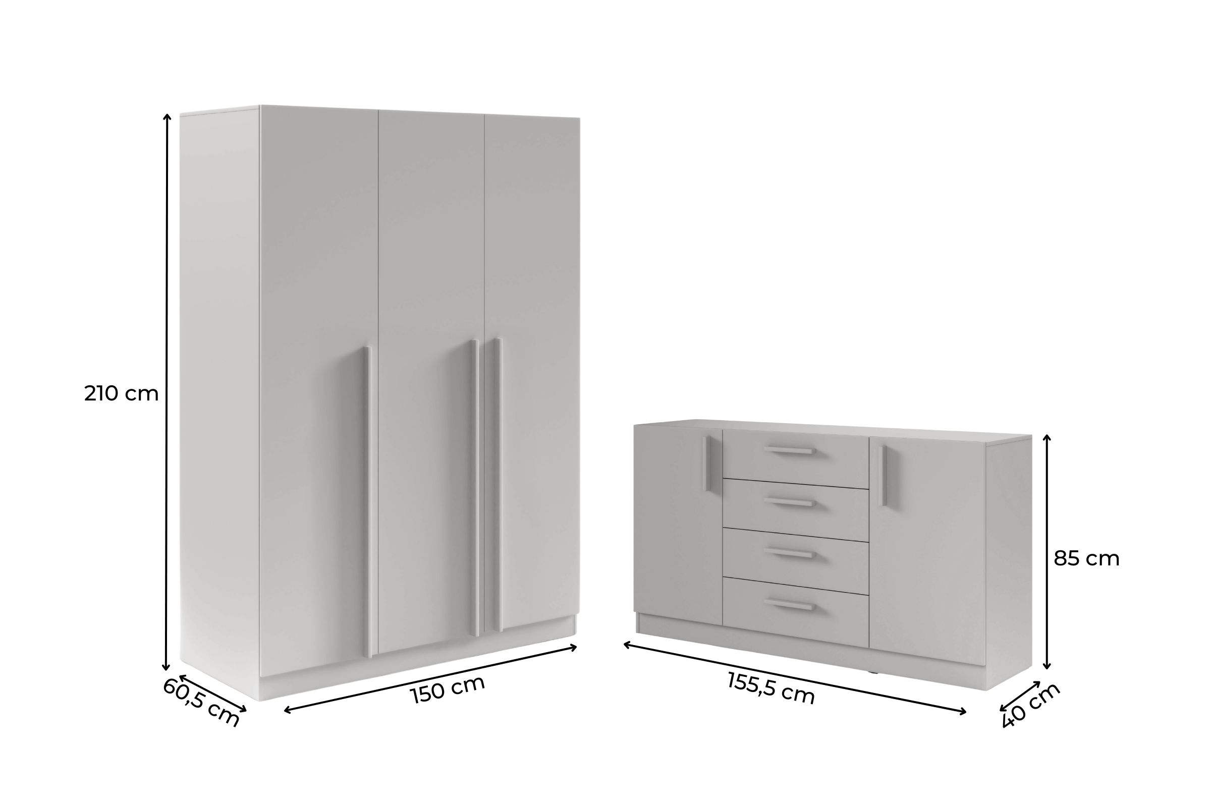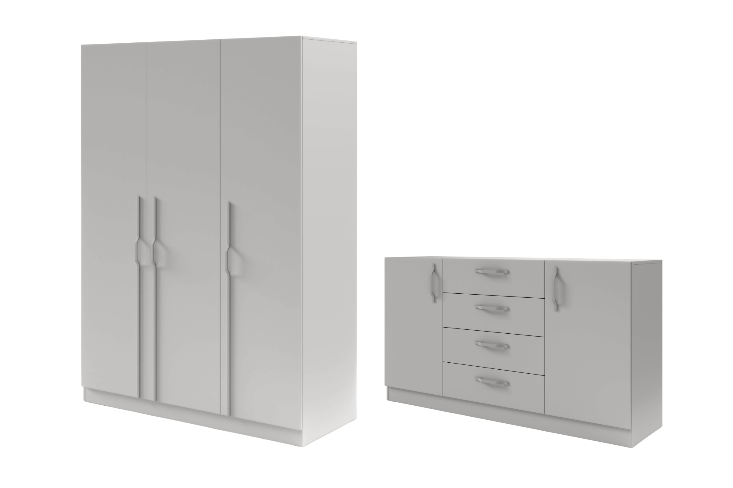 Das Set B BRISSO BR2 & BRK1 ist eine praktische Lösung für Schlafzimmer, Garderobe oder Ankleidebereich. Der 3-türige Kleiderschrank und die große Kommode bieten viel Stauraum und eine übersichtliche Aufteilung für Kleidung, Wäsche und Alltagsgegenstände. Das Set sorgt für ein einheitliches Möbelbild und passt zu modernen Wohnkonzepten.