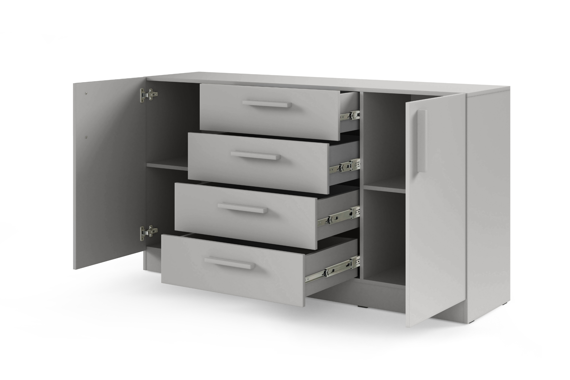 - Innenaufteilung: 4 Schubladen, 2 Türen, Einlegeböden