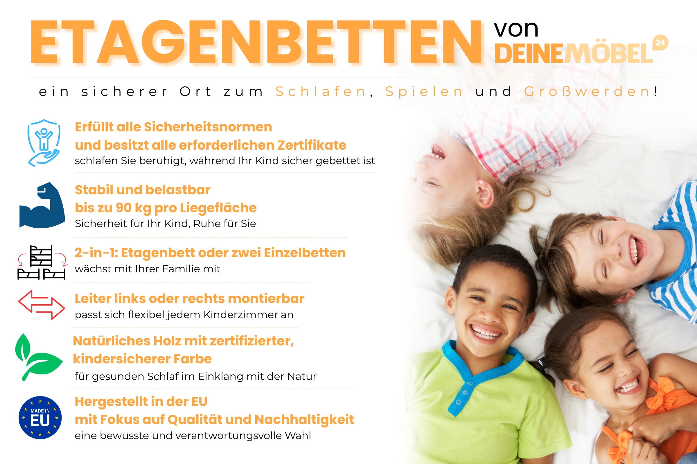 CHARM – Kinder-Etagenbett 90x200 cm für 2 Kinder – platzsparend & kindersicher