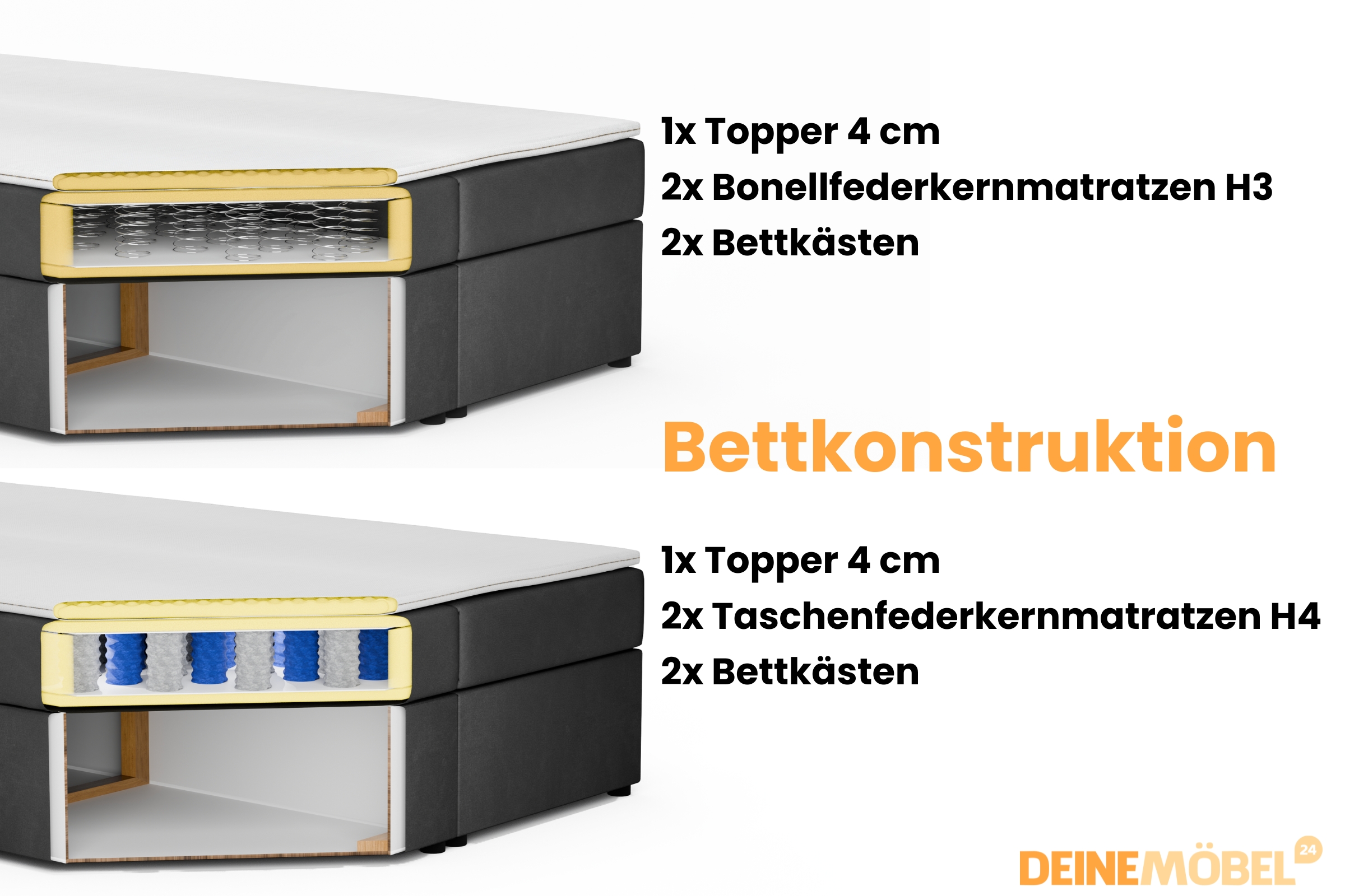 Bitte beachten Sie, dass jedes Boxspringbett eine Sonderfertigung ist.
