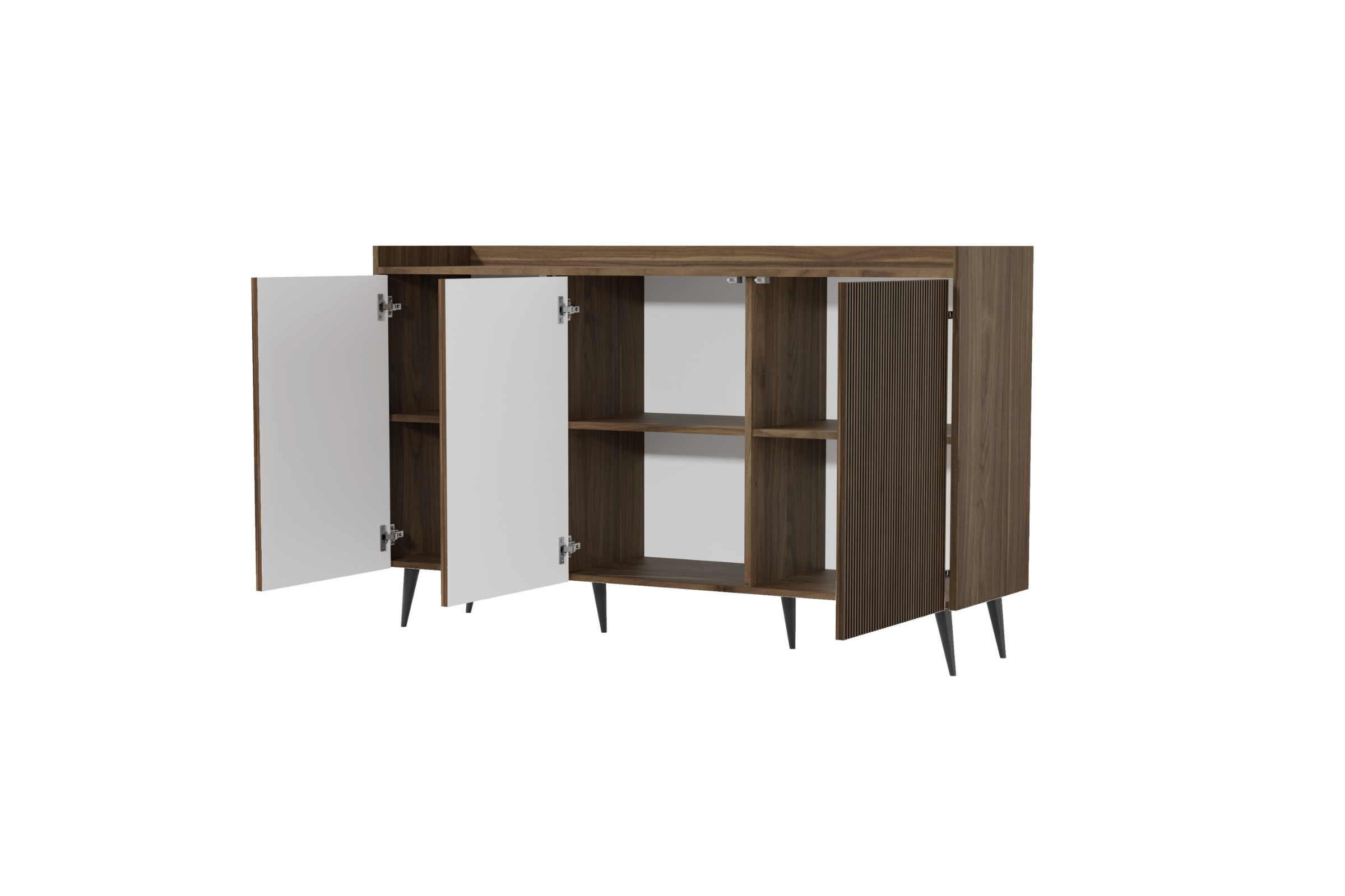 - Front: 3-türig, mit dekorativer Riffelstruktur