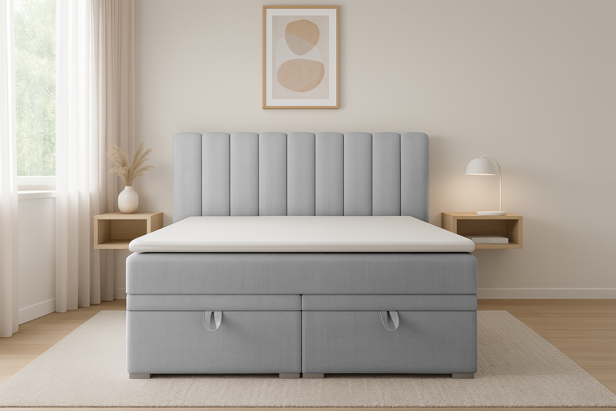 Boxspringbett DAVID 200x200 in Hellgrau – Komfort und Eleganz für Ihr Schlafzimmer