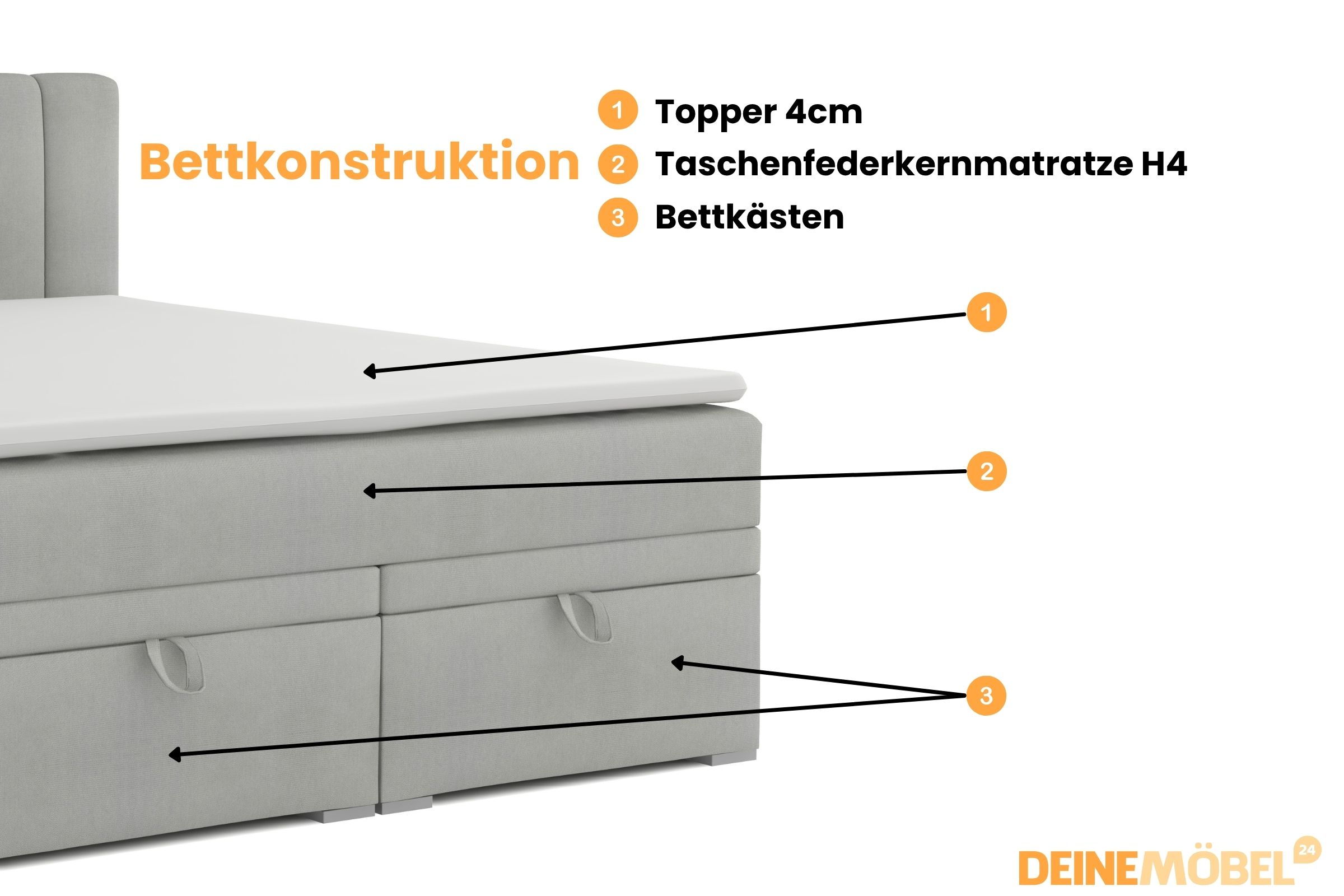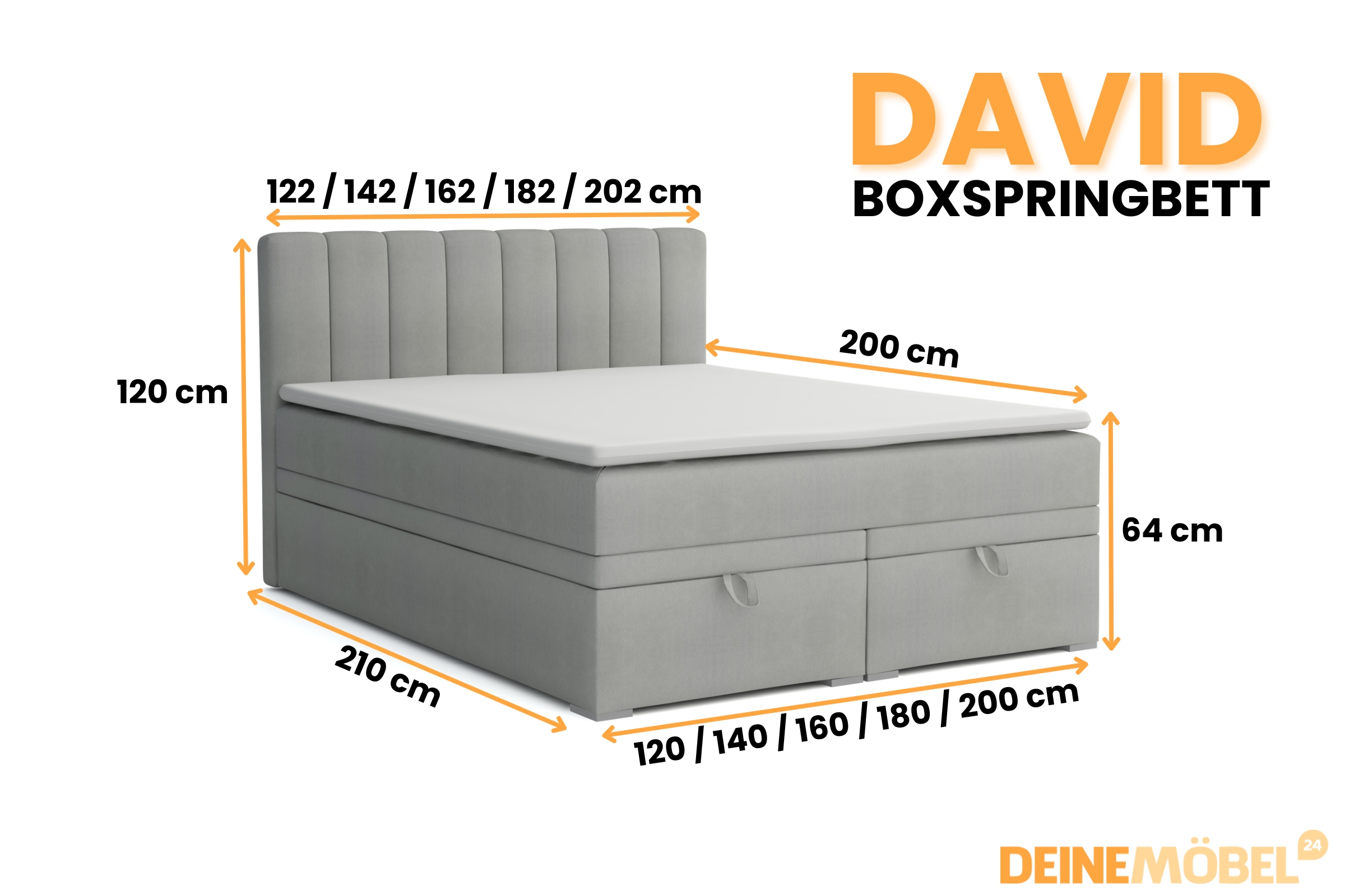 Boxspringbett DAVID, Matratze H4, Kaltschaum-Topper, Bettkasten, Montageanleitung