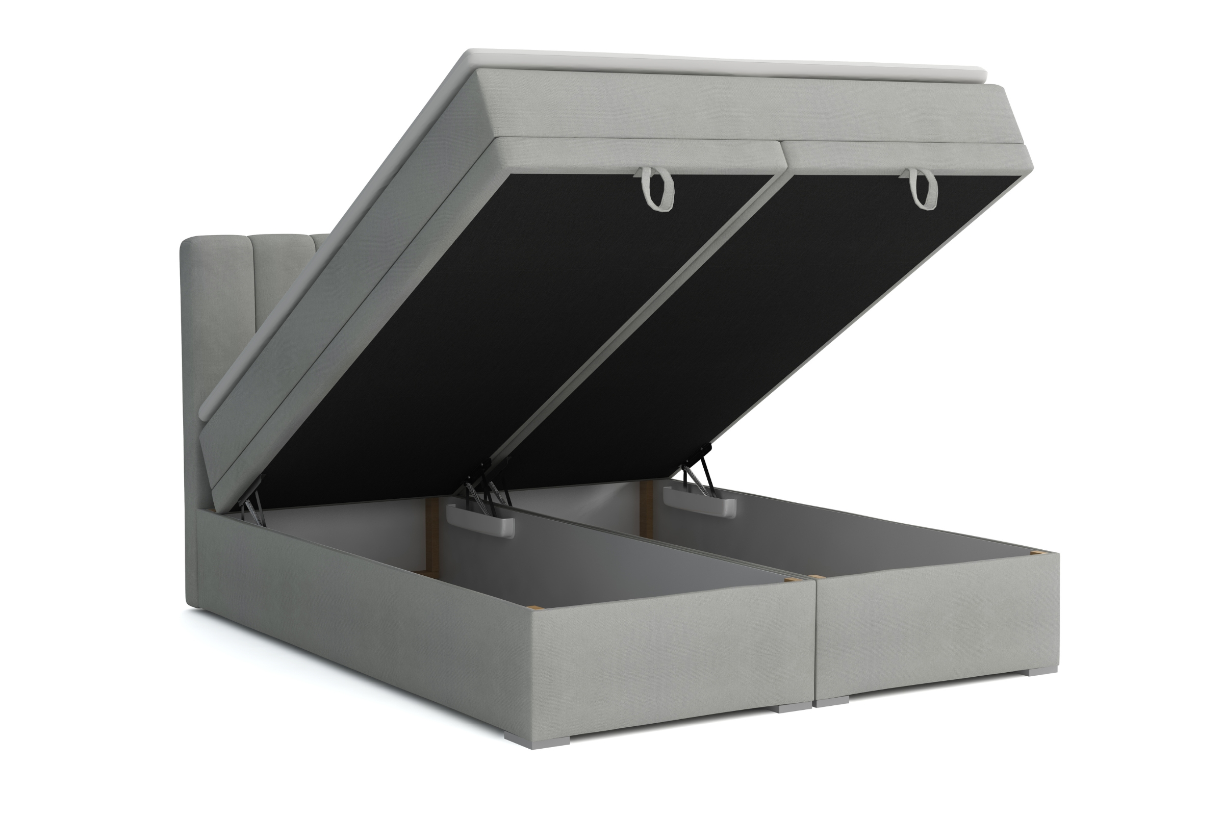 DAVID Nagelneu 200x200 Paros 5 Hellgrau Boxspringbett mit Bettkasten und einer durchgehenden Matratze H4 Deine Möbel