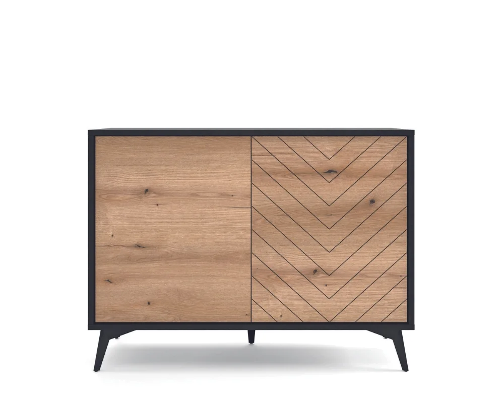 Entdecken Sie die Diamant Kollektion - perfekt für Liebhaber von Minimalismus, modernem Stil und funktionalen Möbeln. Die Kombination aus Eichenholz Evoke und Schwarz verleiht jedem Stück einen einzigartigen Charakter. Dank ihrer vielseitigen Form passen sich die Diamant-Möbel mühelos jedem Wohnzimmer an, sei es modern, loftartig oder klassisch. Besonders hervorzuheben sind die geriffelte Fronten, die Originalität und Eleganz verleihen. Durch ihre Montage auf Metallfüßen sind die Einheiten leicht zu pflegen und visuell leichter. Tauchen Sie ein in die Welt der Diamond Kollektion und erleben Sie zeitlose Eleganz und Funktionalität.