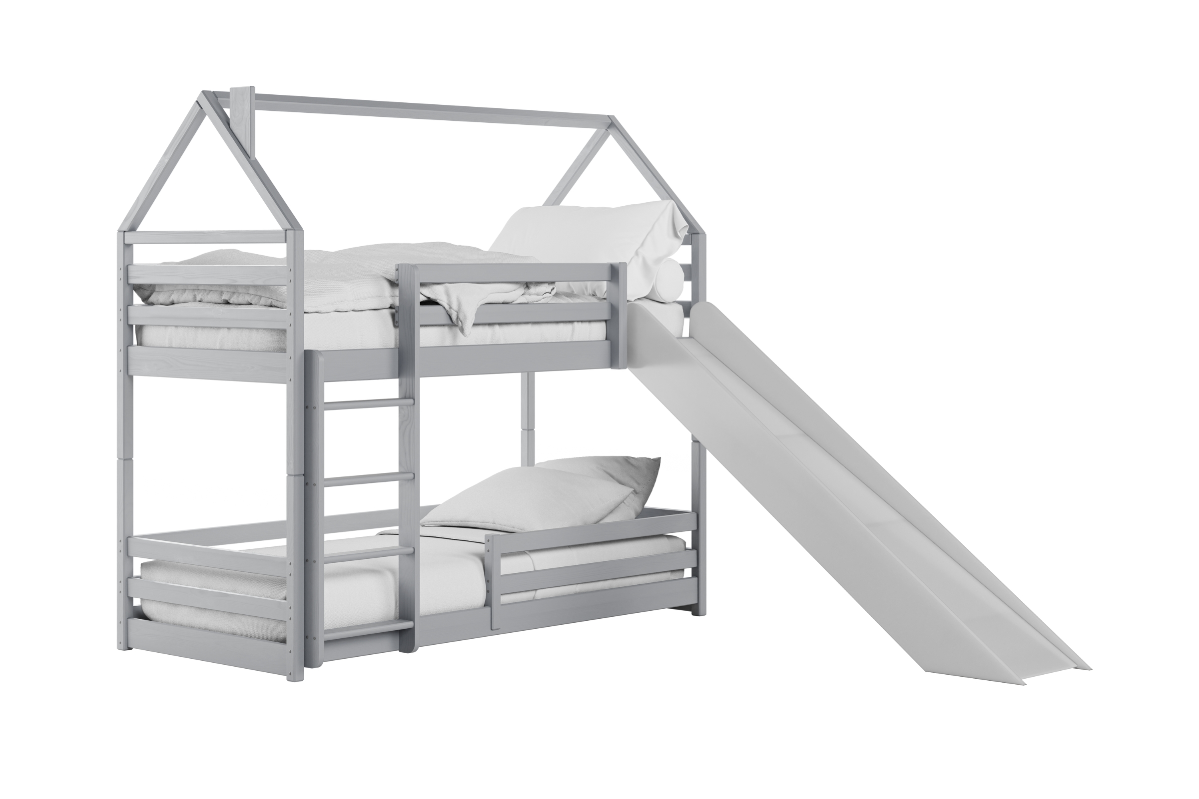 FUN Etagenbett Hausbett mit Rutsche für 2 Kinder – Bodenbett mit Leiter und Lattenrost