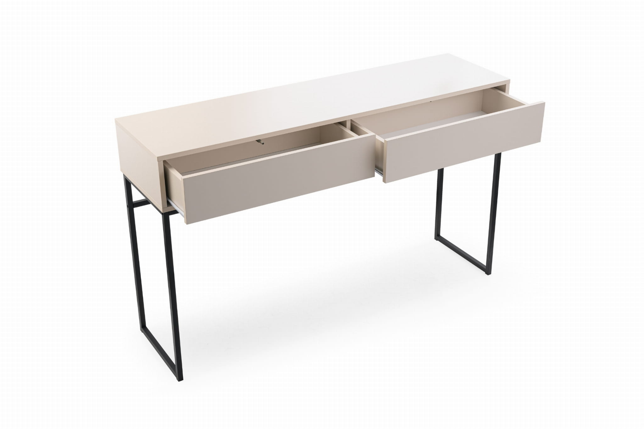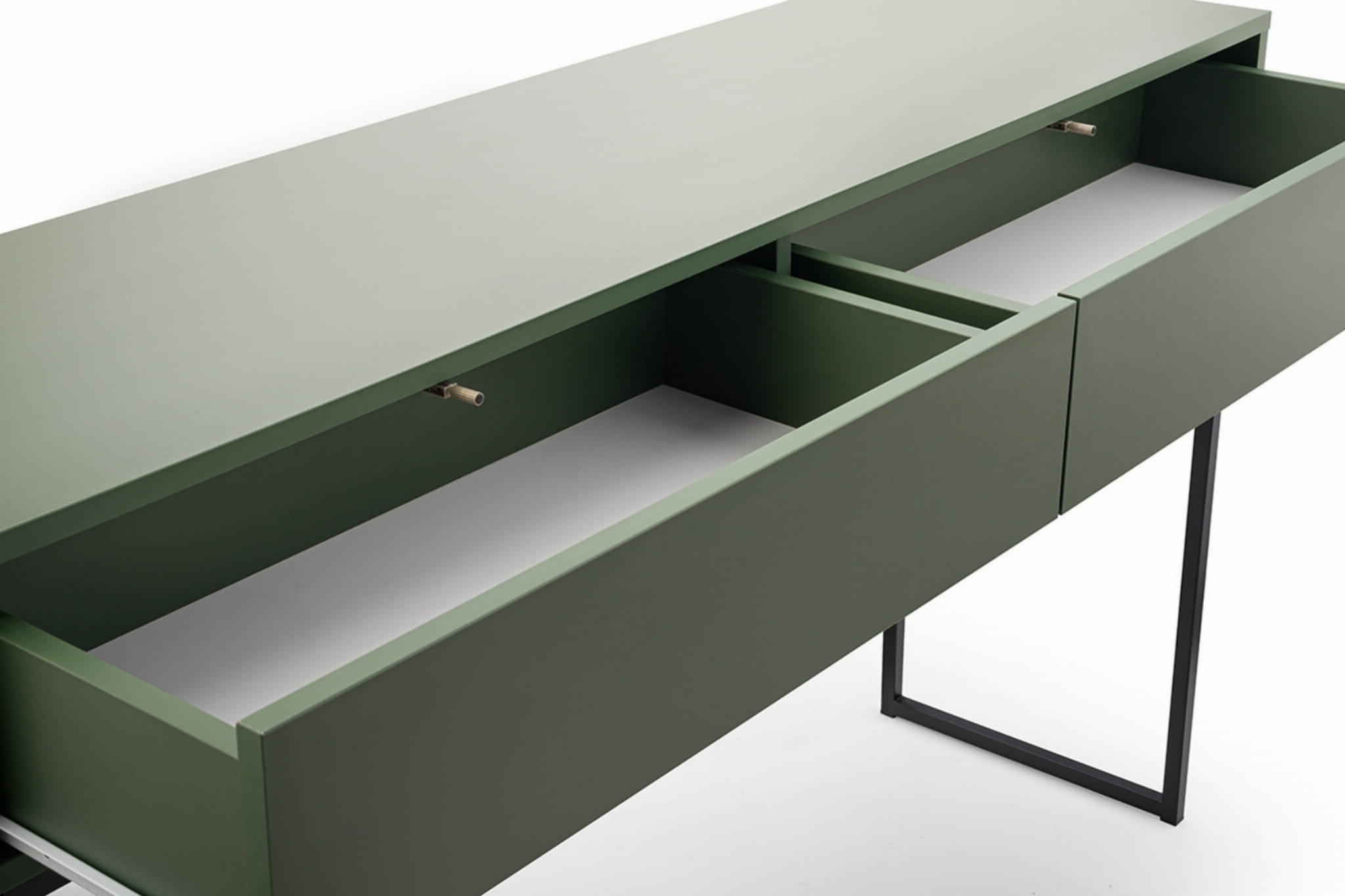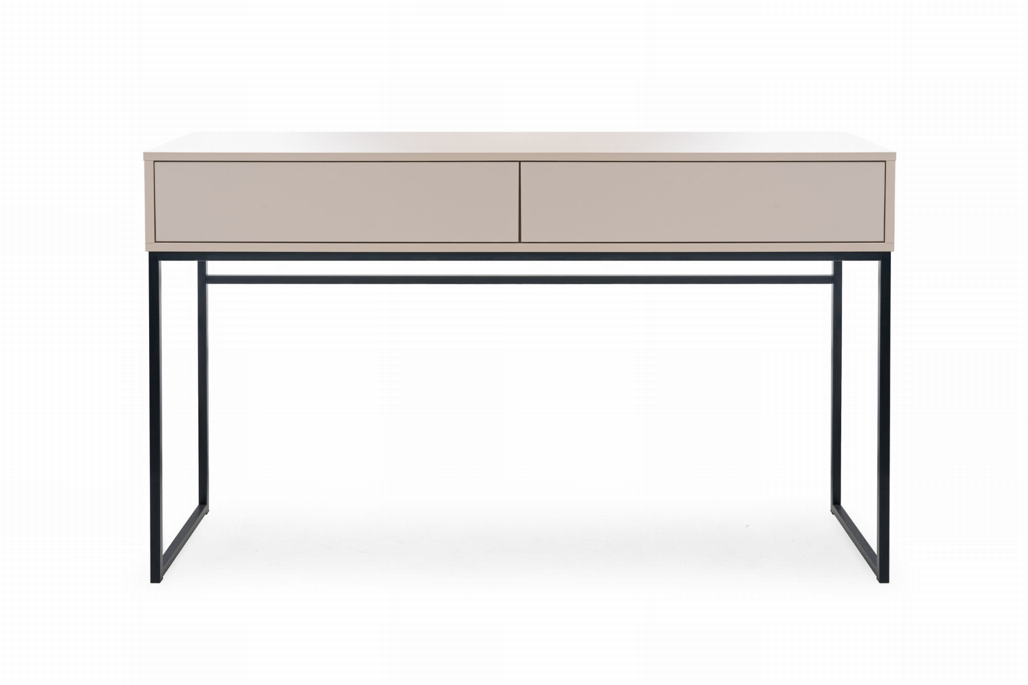 Der Schminktisch GENEVE ist die perfekte Kombination aus modernem Design und praktischer Funktionalität. Mit seiner eleganten Form, der Farbvariante in Sandbeige oder Dunkelgrün und dem stabilen schwarzen Metallgestell passt er hervorragend in jedes moderne Schlafzimmer oder Ankleidezimmer. Zwei großzügige Schubladen bieten ausreichend Platz für Kosmetik, Schmuck oder Alltagsgegenstände – alles griffbereit und ordentlich verstaut.