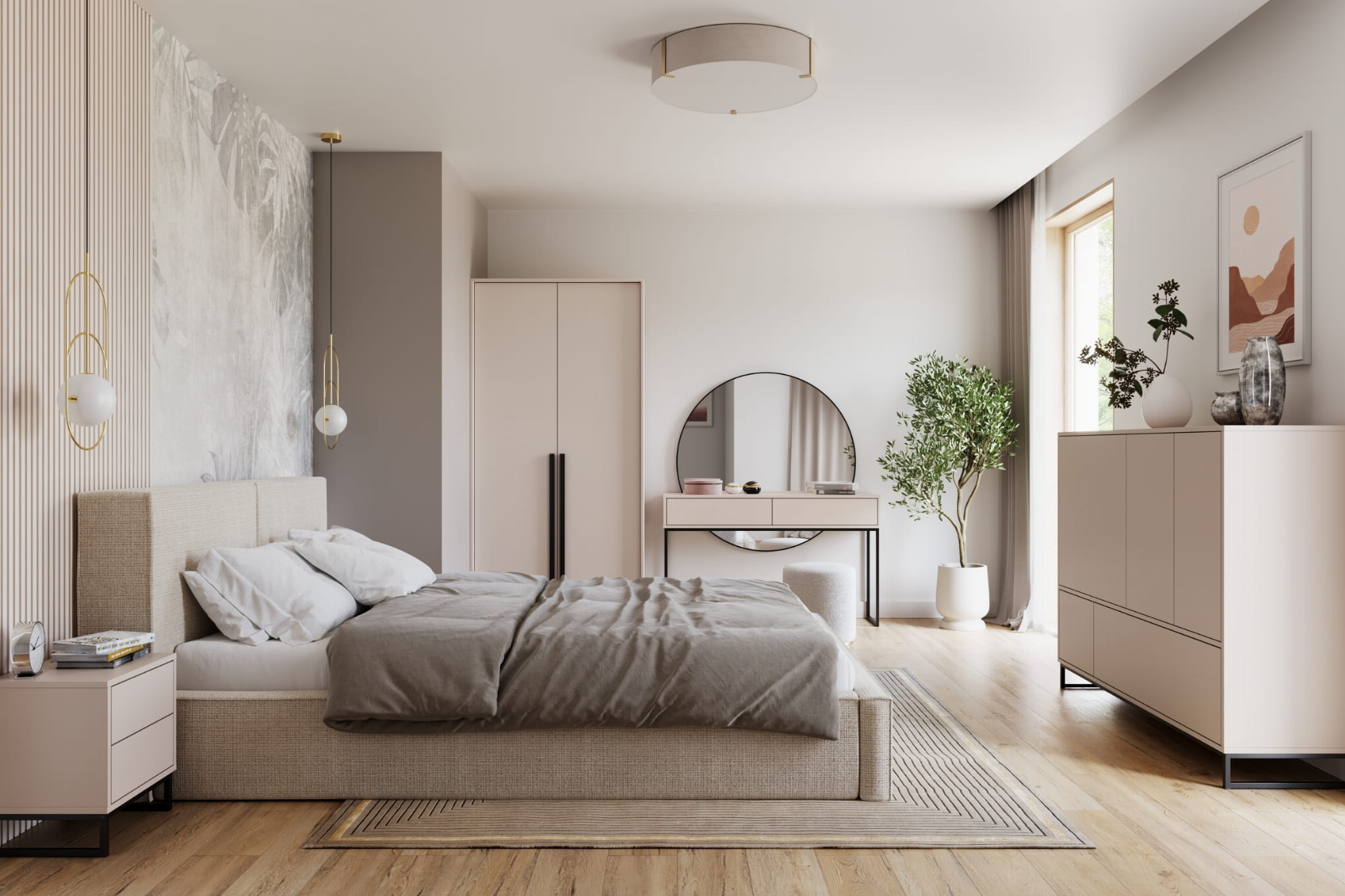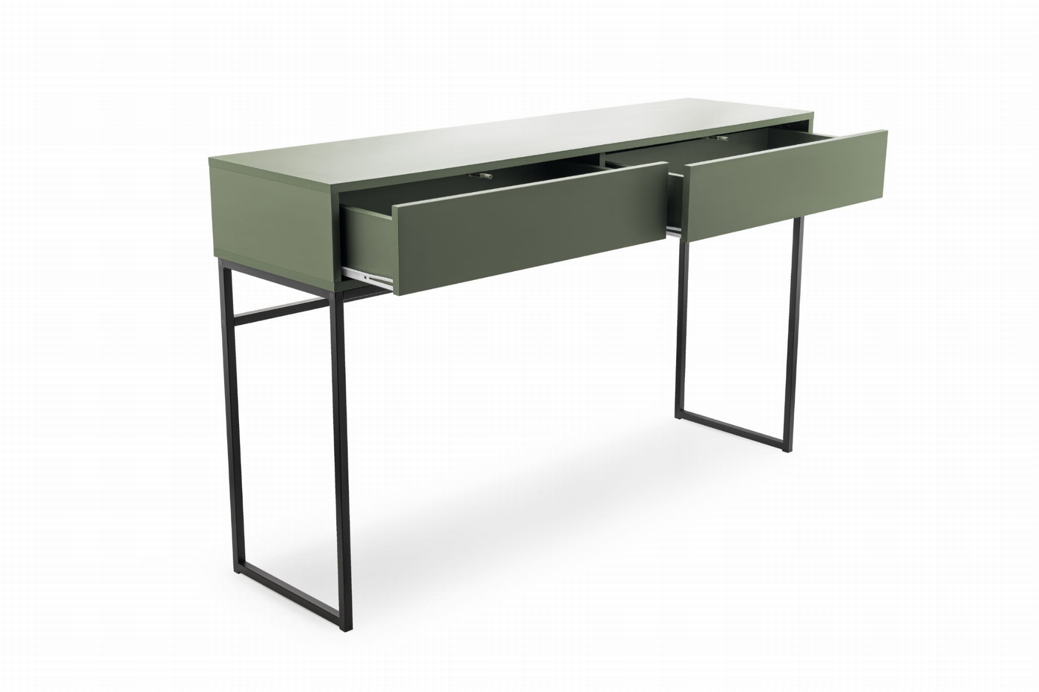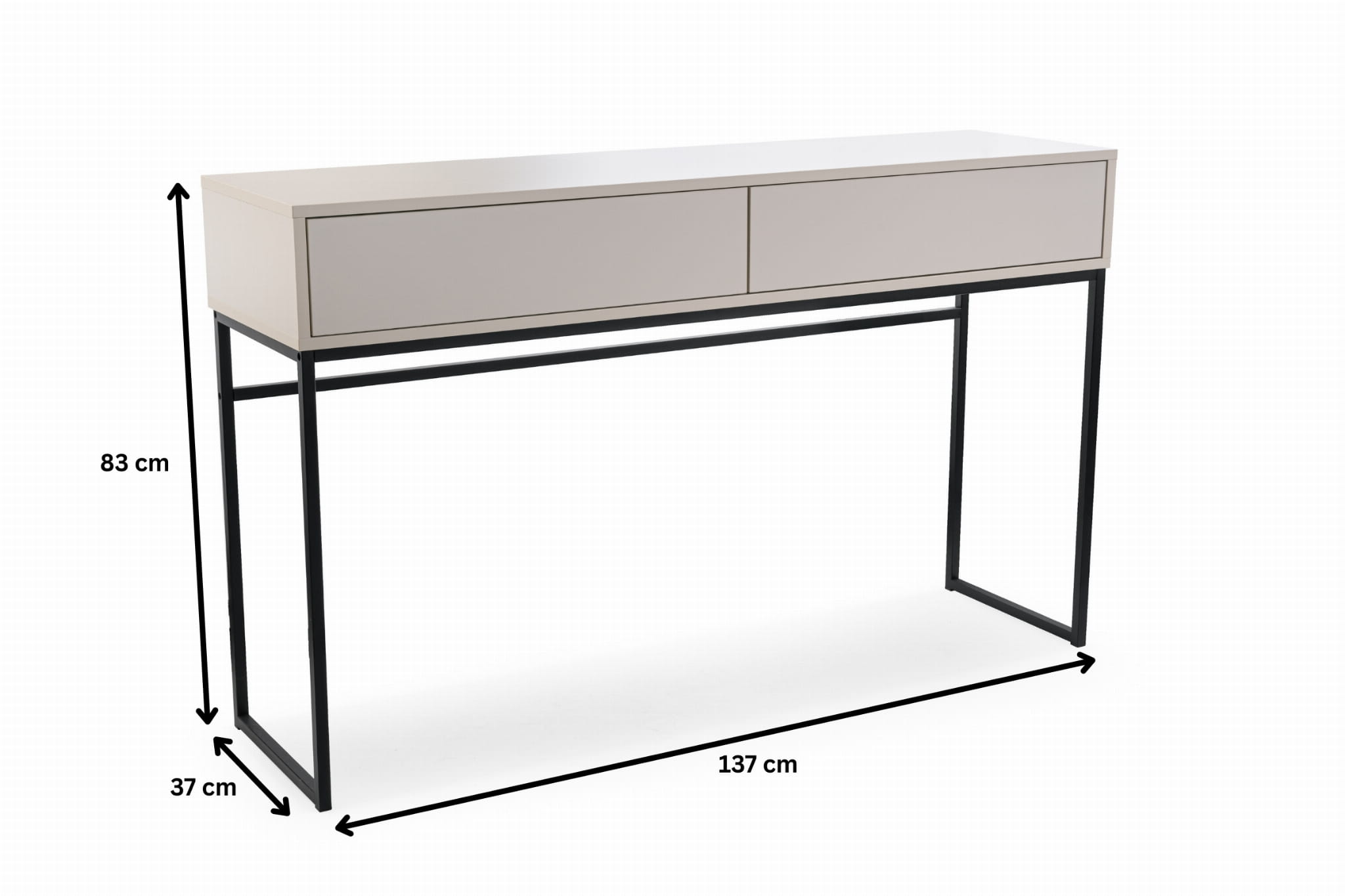 Der Schminktisch GENEVE ist die perfekte Kombination aus modernem Design und praktischer Funktionalität. Mit seiner eleganten Form, der Farbvariante in Sandbeige oder Dunkelgrün und dem stabilen schwarzen Metallgestell passt er hervorragend in jedes moderne Schlafzimmer oder Ankleidezimmer. Zwei großzügige Schubladen bieten ausreichend Platz für Kosmetik, Schmuck oder Alltagsgegenstände – alles griffbereit und ordentlich verstaut.