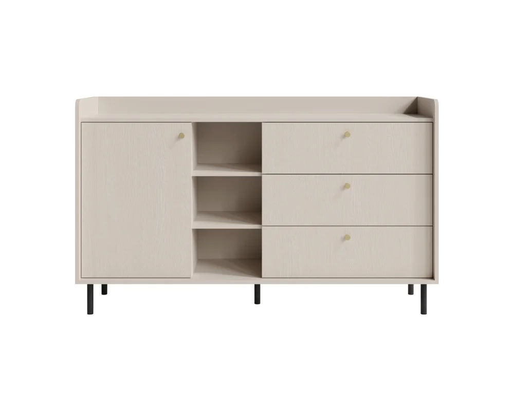 Goldene Akzente, sandiges Beige und eingebaute Arbeitsplatten sind nur einige der Elemente, die Ihren Wohnbereich mit GEORGIA elegant und stilvoll machen.