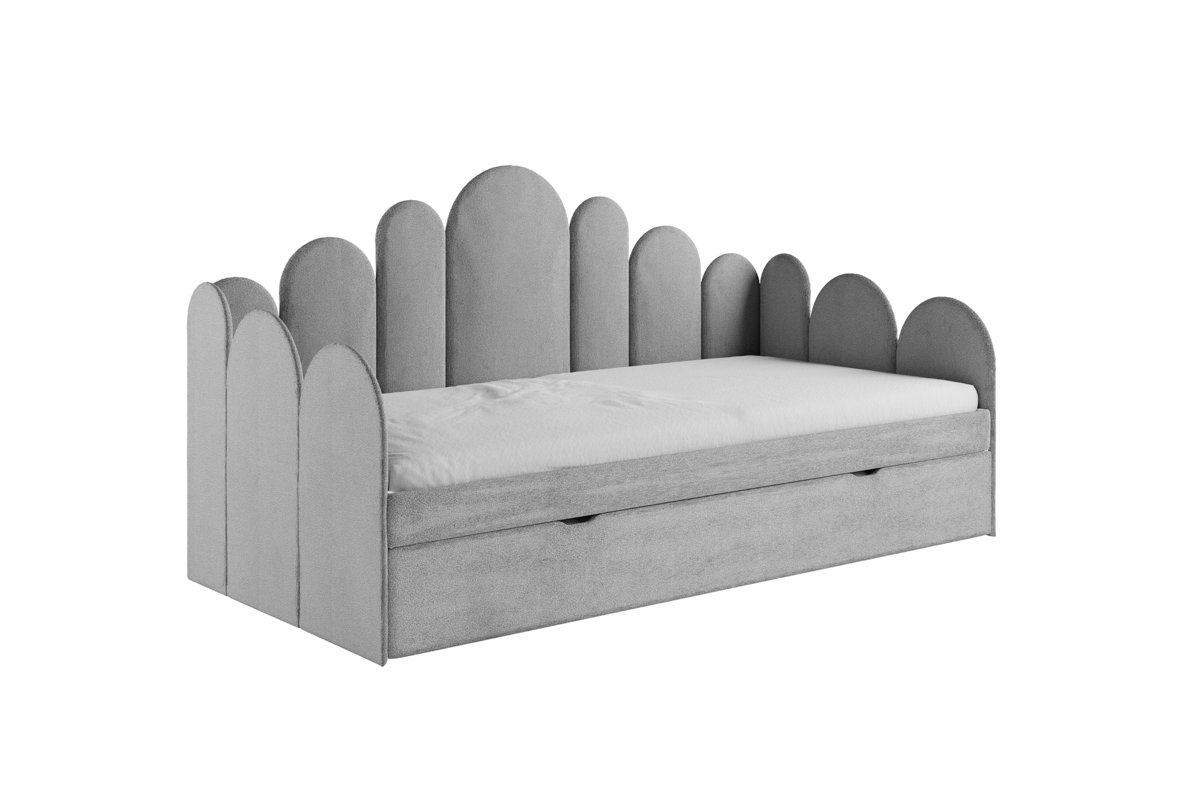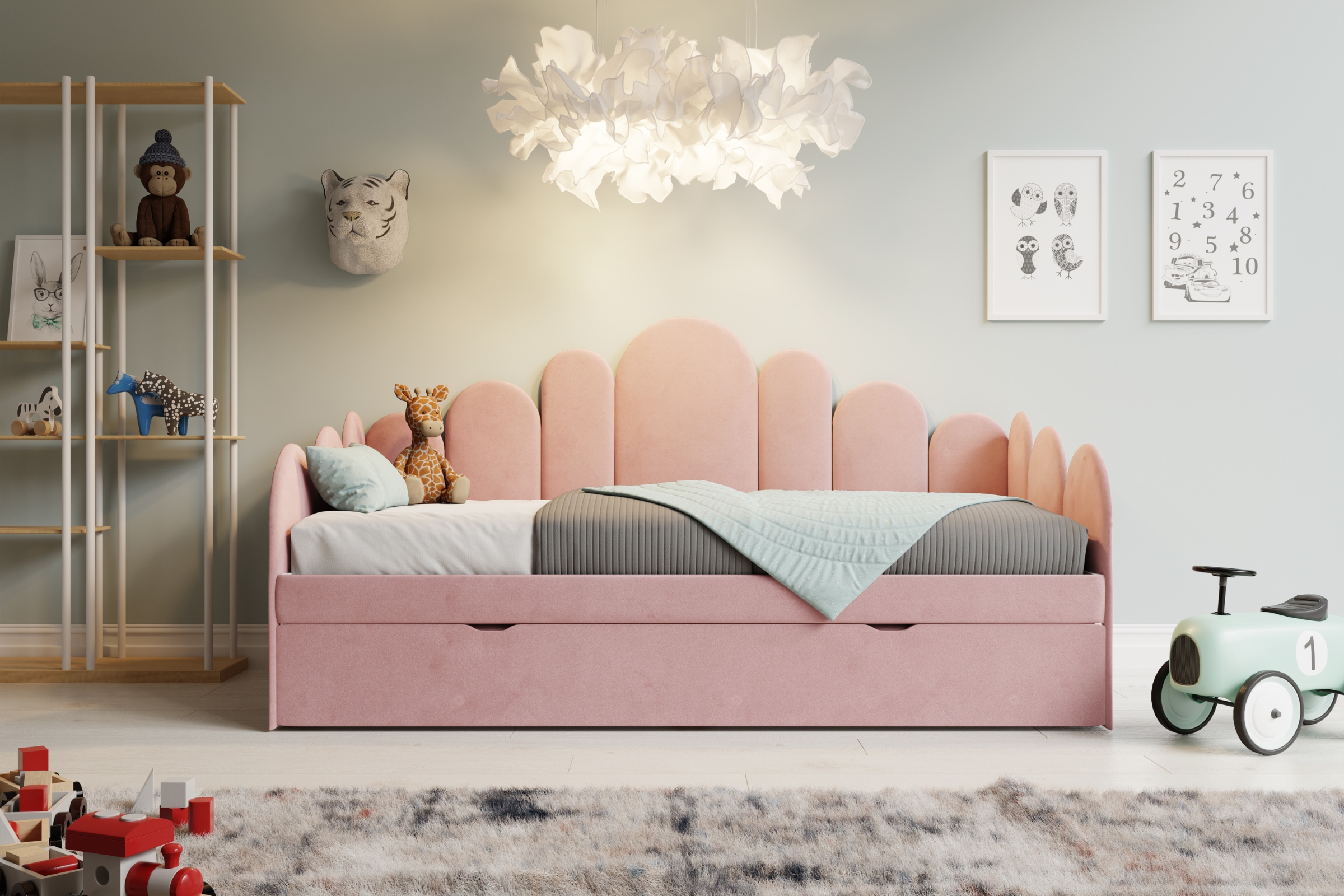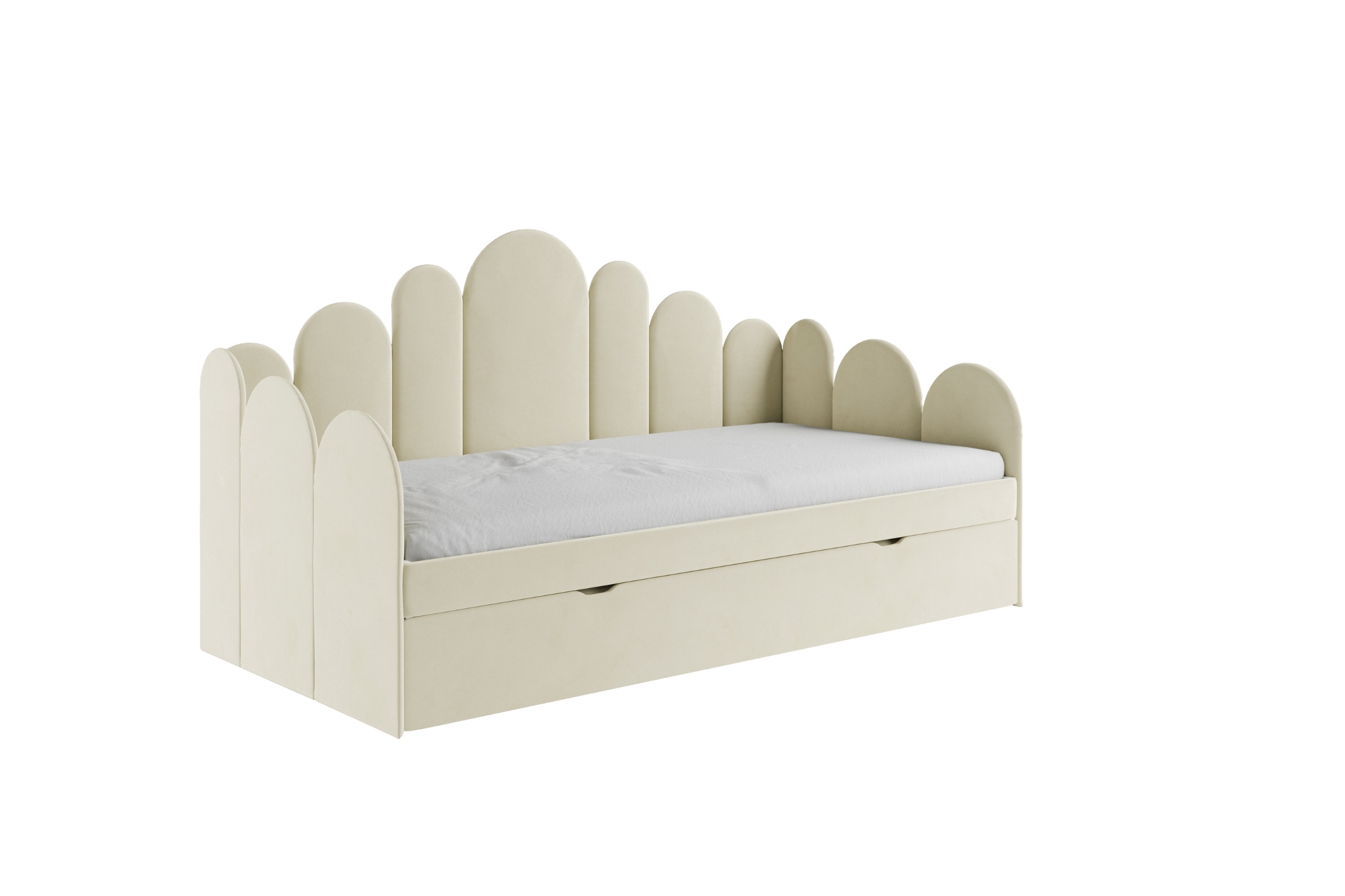 JESS Kinderbett – weich gepolstert, mit Stauraum & ausziehbarer Zusatzliege