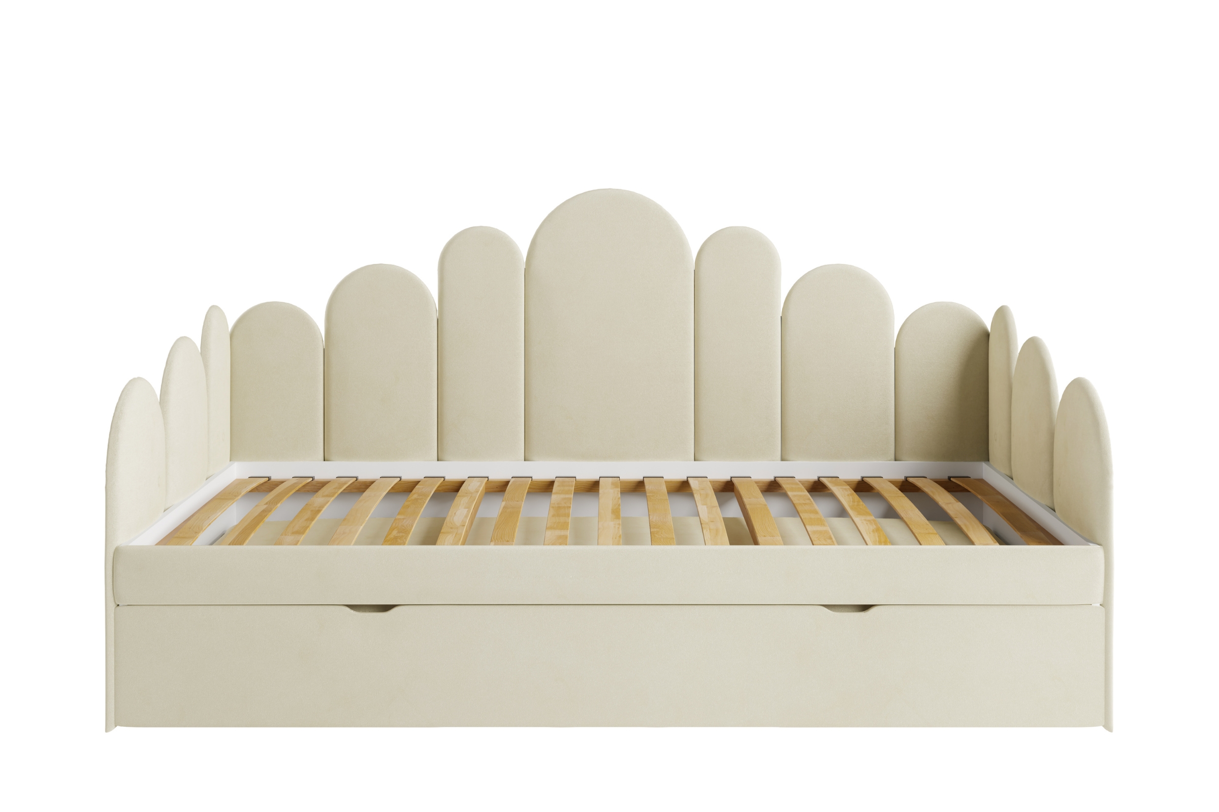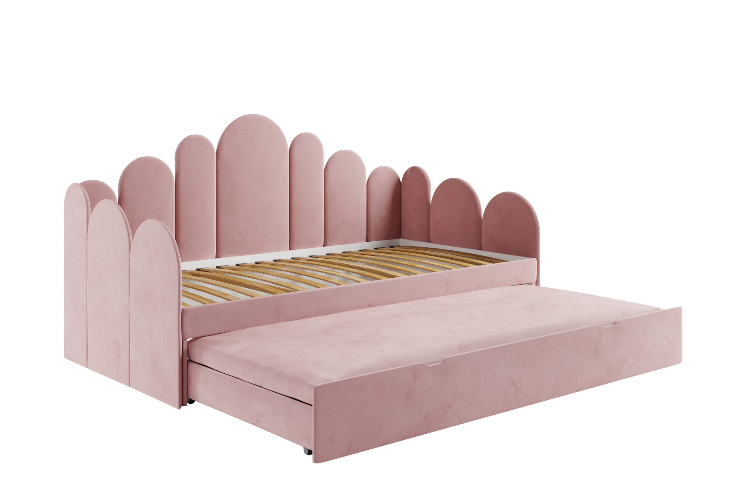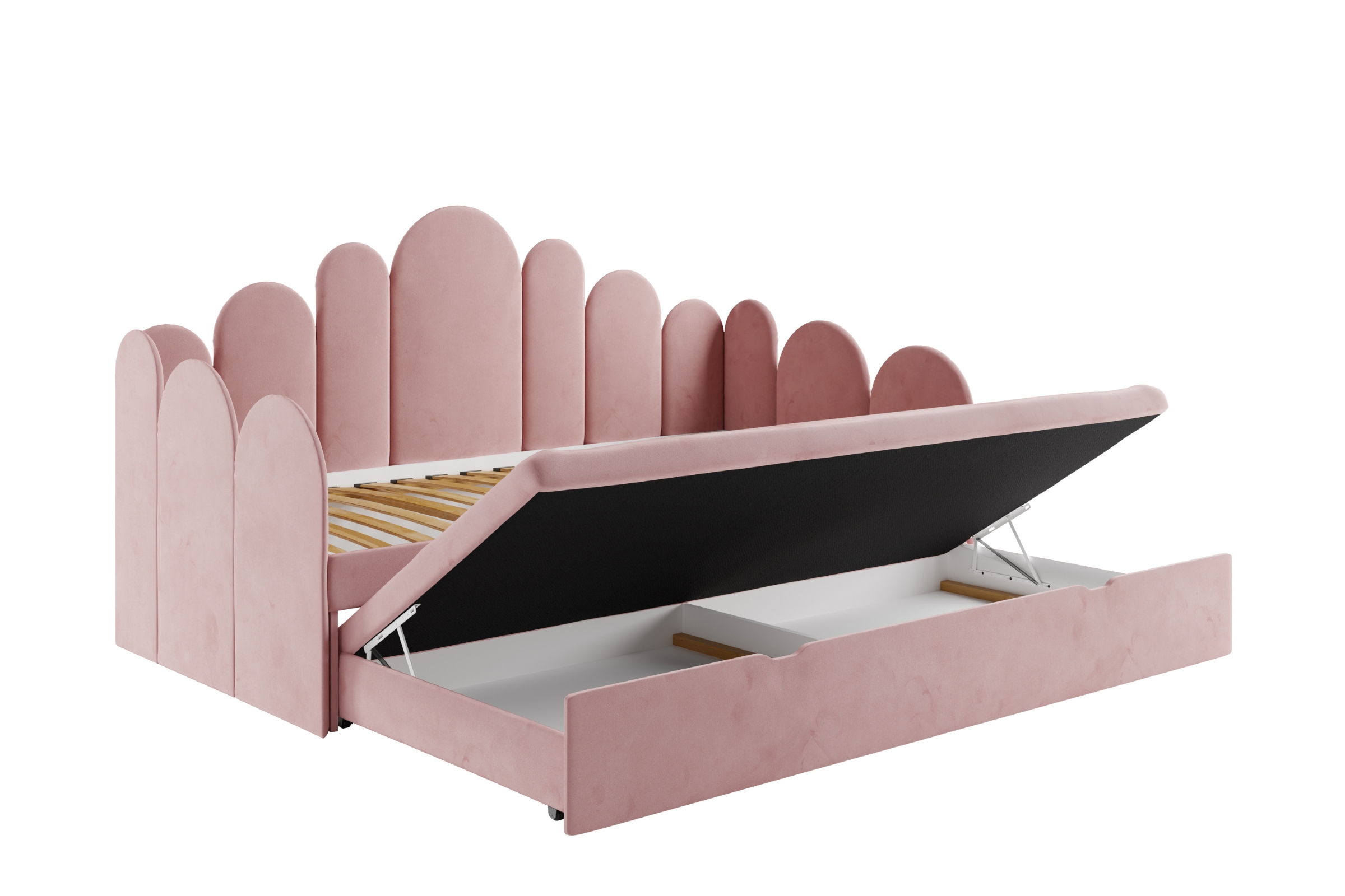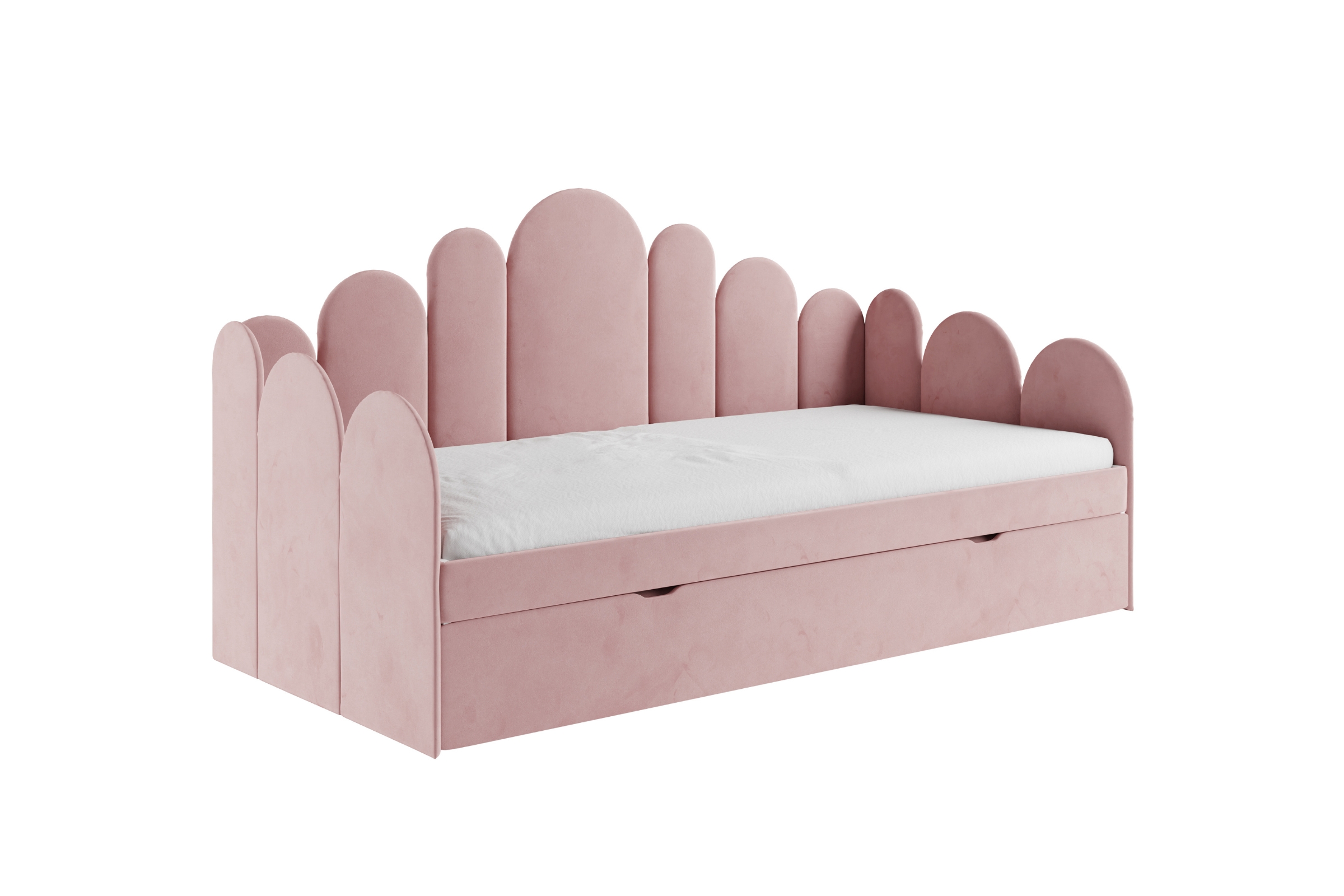 JESS Kinderbett – weich gepolstert, mit Stauraum & ausziehbarer Zusatzliege