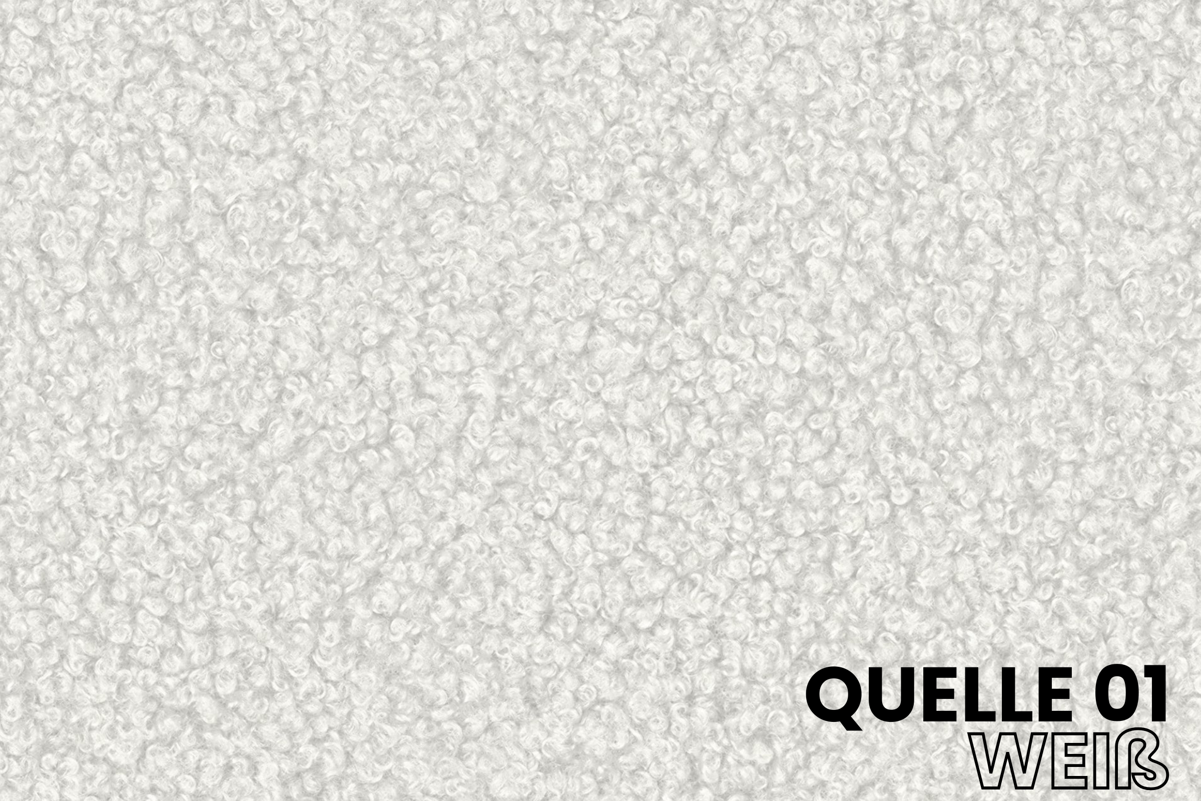 Der Bezug besteht aus dem exklusiven Bouclé-Stoff „Quelle“. Diese Stoffart ist besonders weichstrukturreich und zugleich strapazierfähig. Sie wirkt modern und gemütlich, ist pflegeleicht und überzeugt durch ihre Langlebigkeit – perfekt für den täglichen Gebrauch.