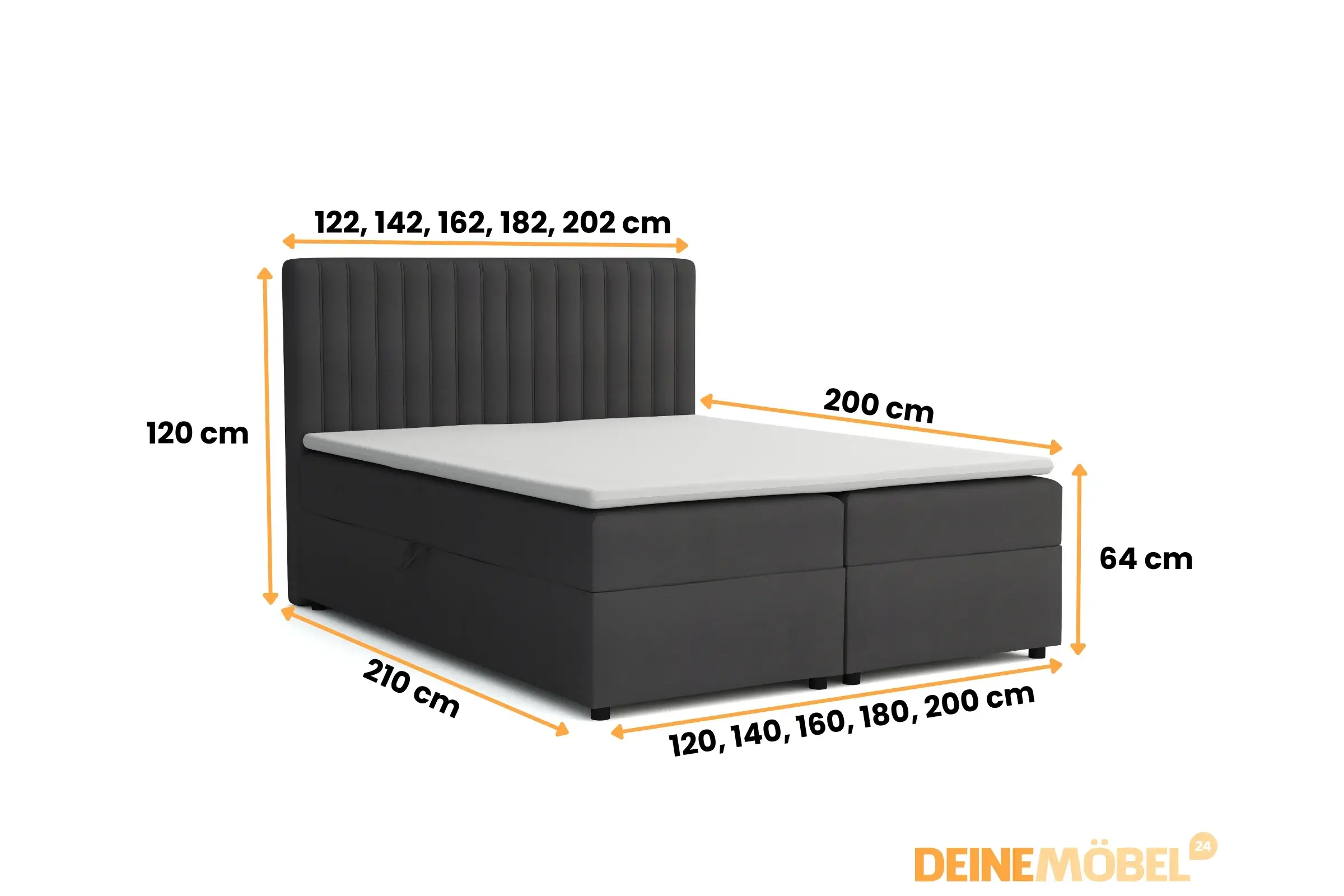 - 180 x 200 cm: Außenmaße 182x210x120 cm, Liegefläche 180x200 cm