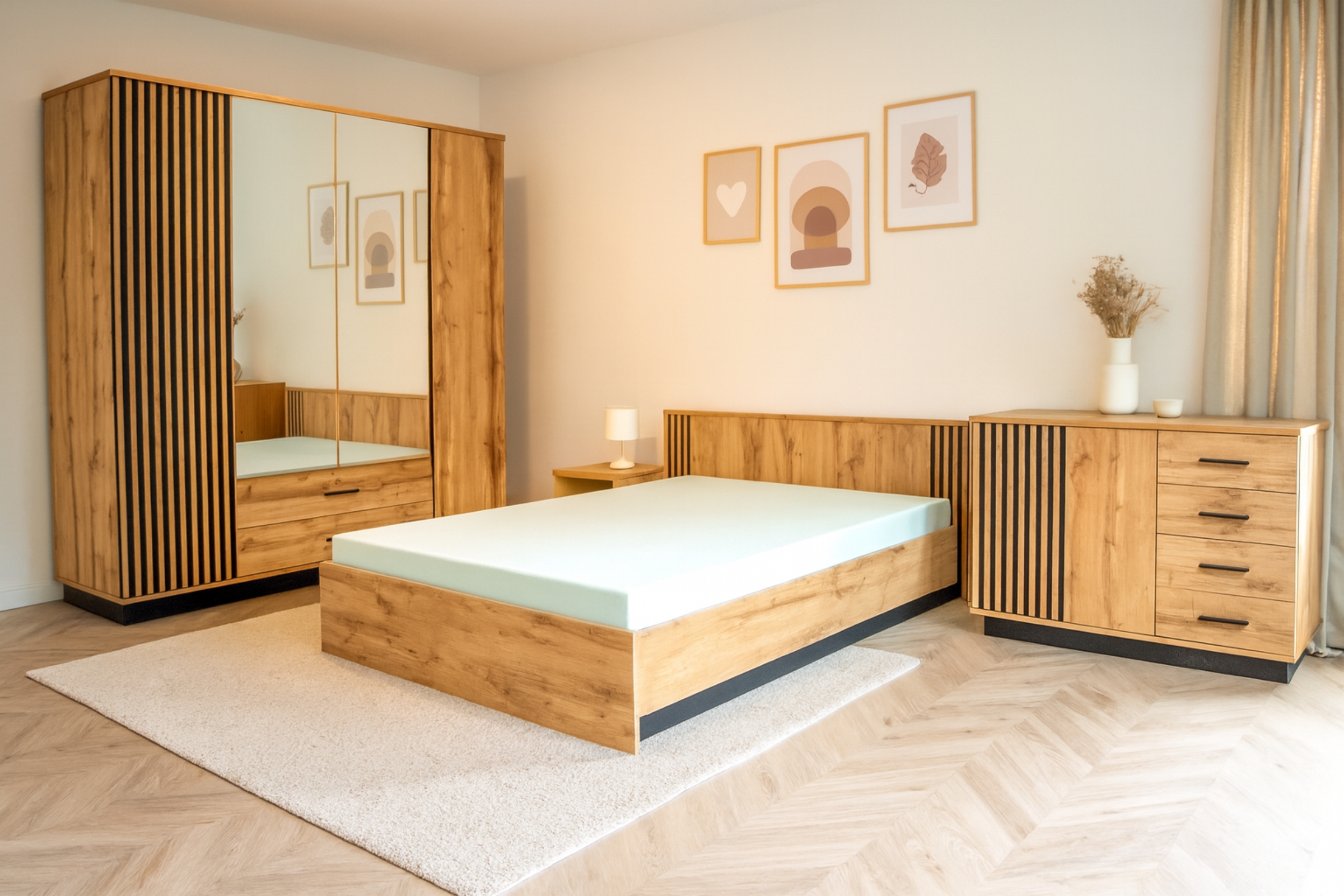 - Komplettes Schlafzimmer-Set im modernen Natur-Look