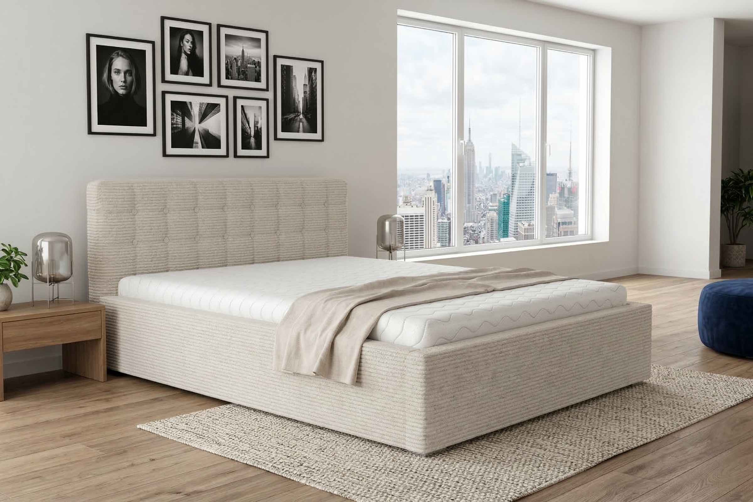 - Modernes Polsterbett mit Cord-Bezug – stilvoll und zeitlos