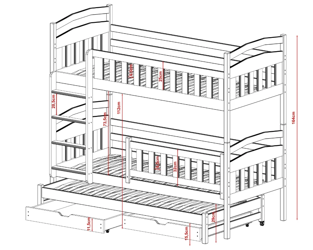 Typ: Etagenbett für 3 Kinder
