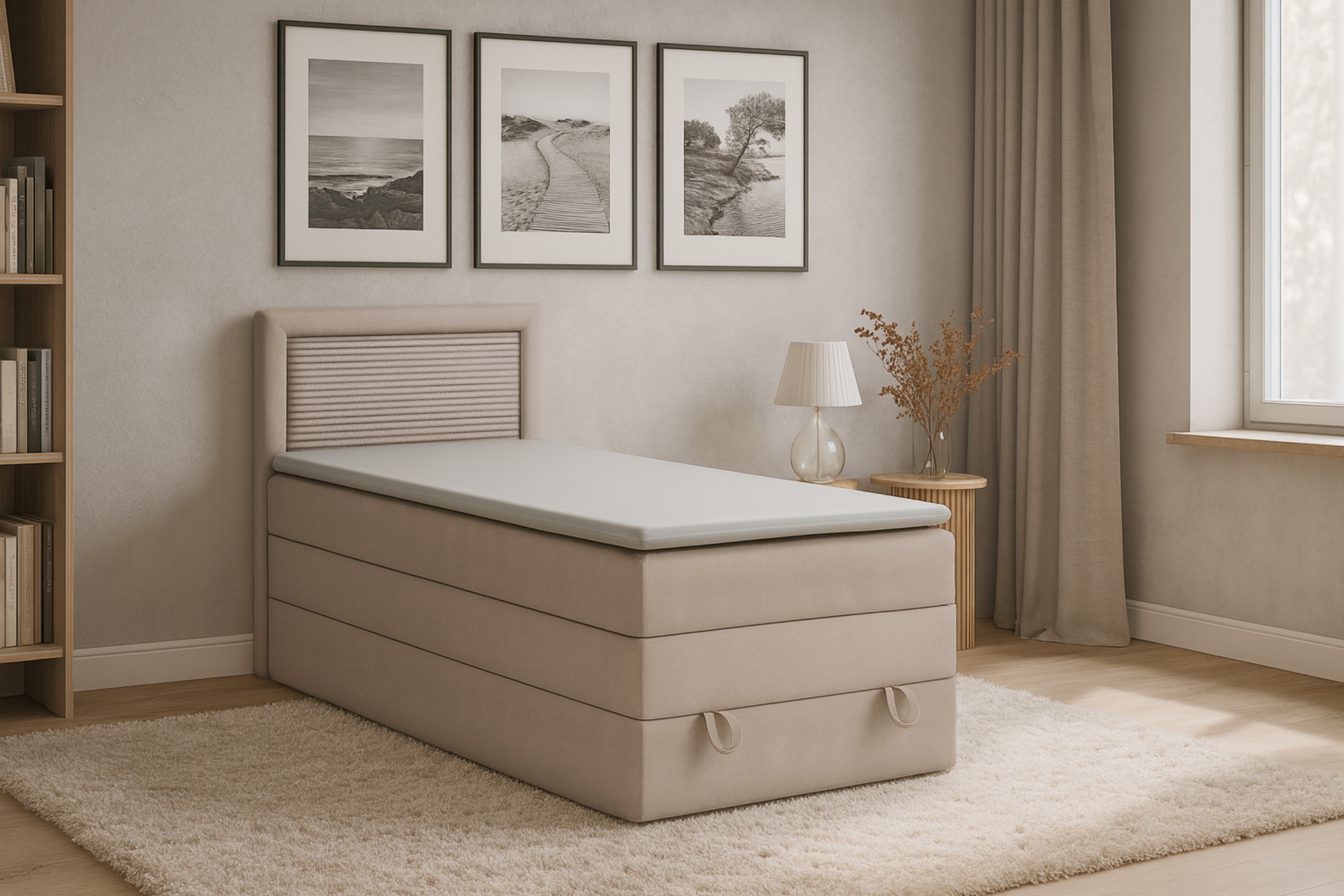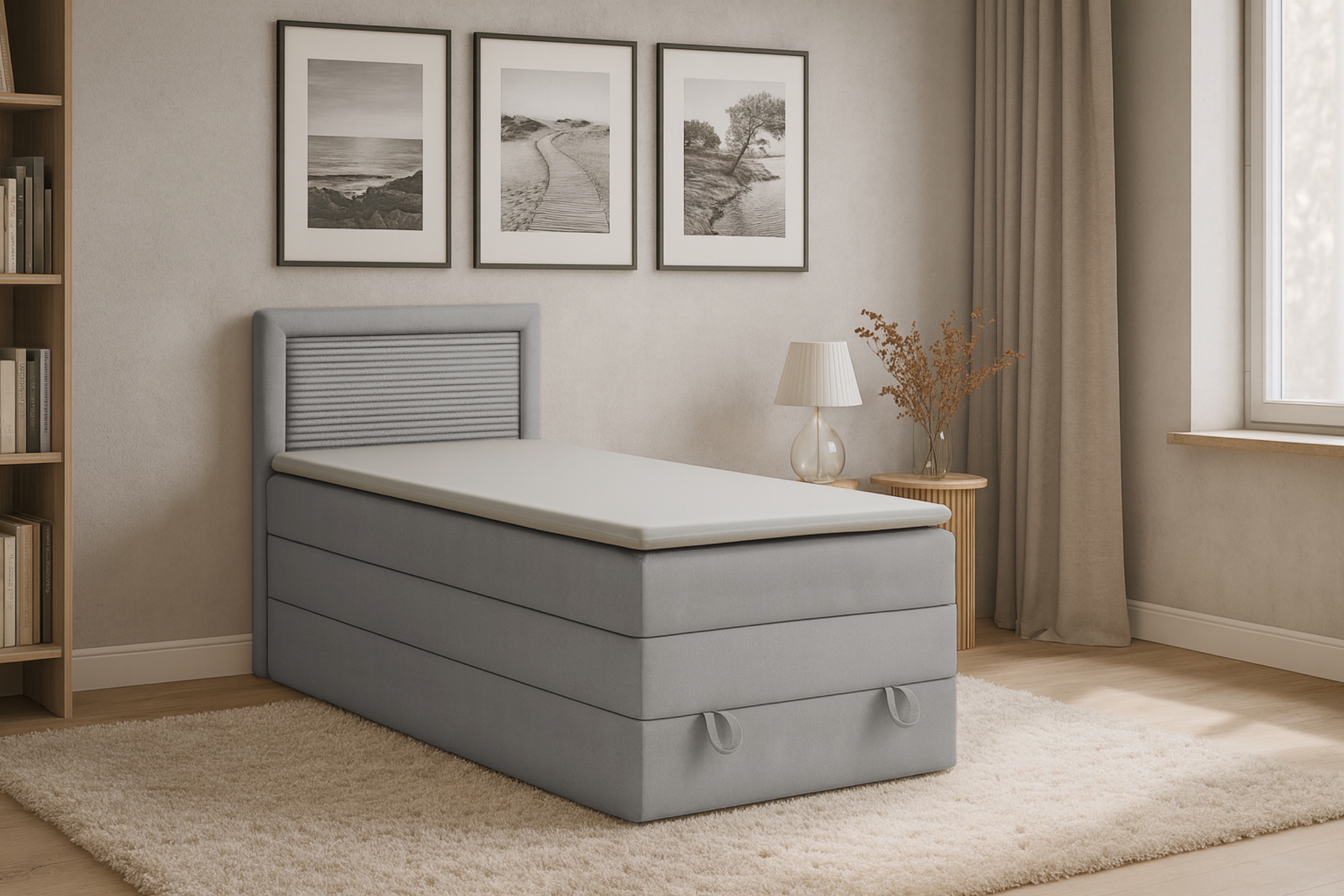 Das Boxspringbett NORA ist die perfekte Wahl für Ihr Schlafzimmer oder Jugendzimmer. Mit seinem modernen und zugleich funktionalen Design bietet es höchsten Schlafkomfort und praktische Extras wie einen von vorne zugänglichen Bettkasten, der zusätzlichen Stauraum für Bettwäsche und Kissen bereithält. Dieses elegante Modell ist in den Farben Beige, Hellgrau, Anthrazit und Schwarz erhältlich, um harmonisch in Ihr Interieur zu passen.