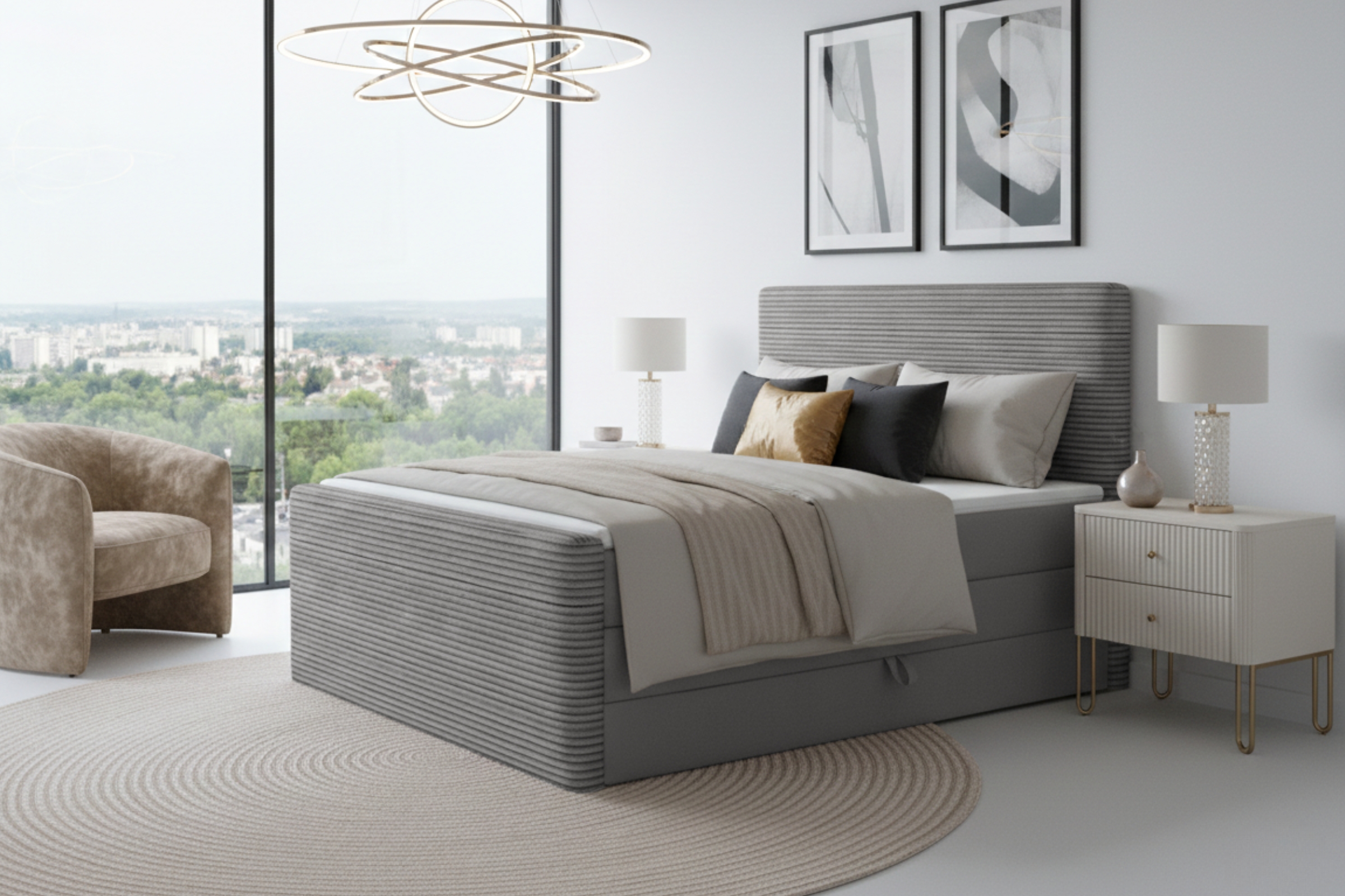 Das Boxspringbett OLA vereint stilvolles Design, Komfort und Funktionalität. Perfekt für alle, die ihr Schlafzimmer in eine stilvolle Wohlfühloase verwandeln möchten. Bestellen Sie jetzt und genießen Sie erholsame Nächte!