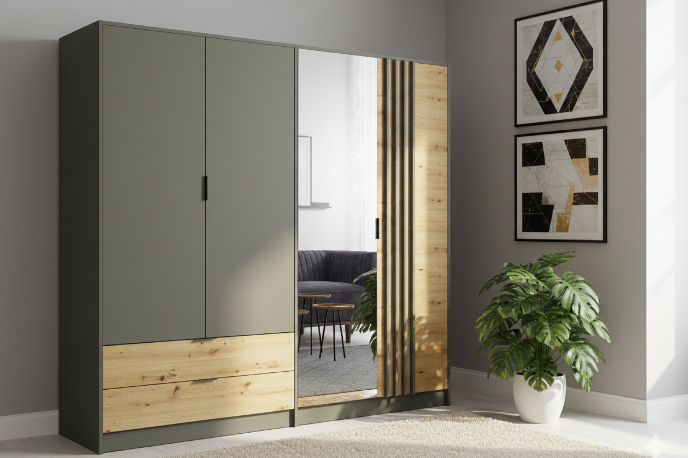 Großer Kleiderschrank mit Spiegel – viel Stauraum für Kleidung, Bettwäsche und Accessoires