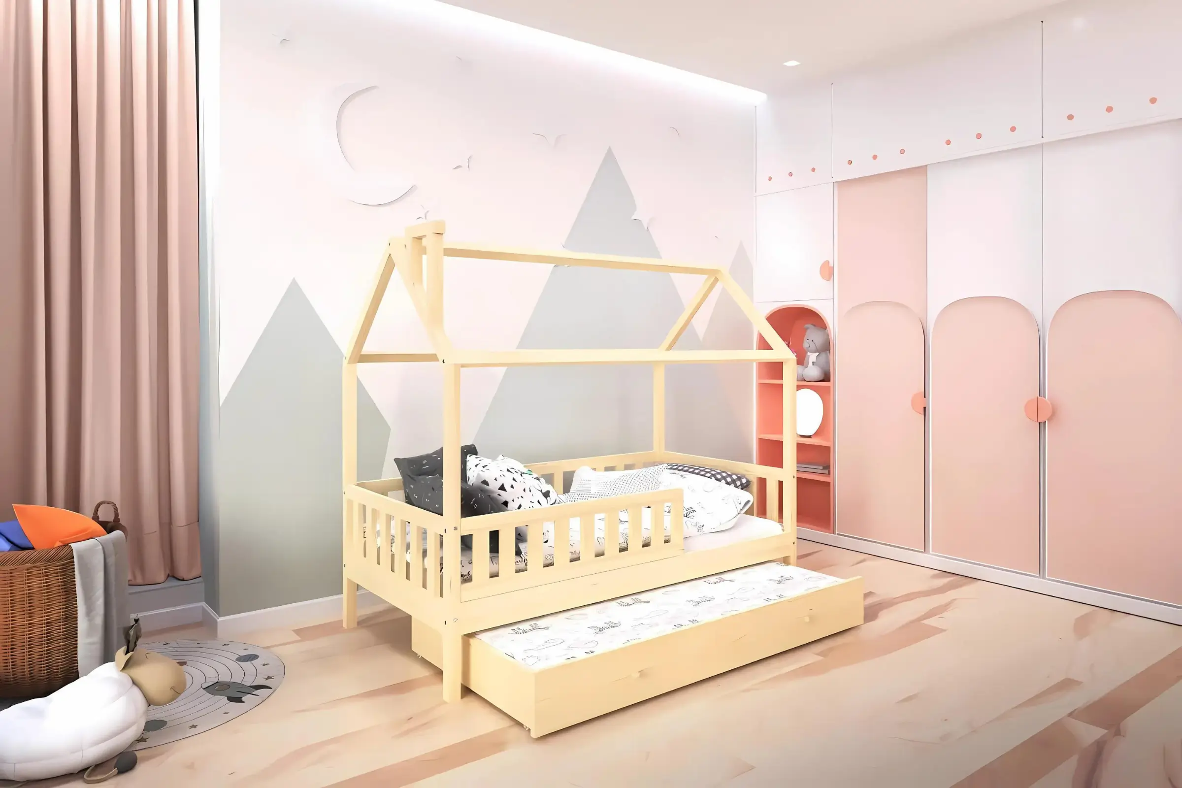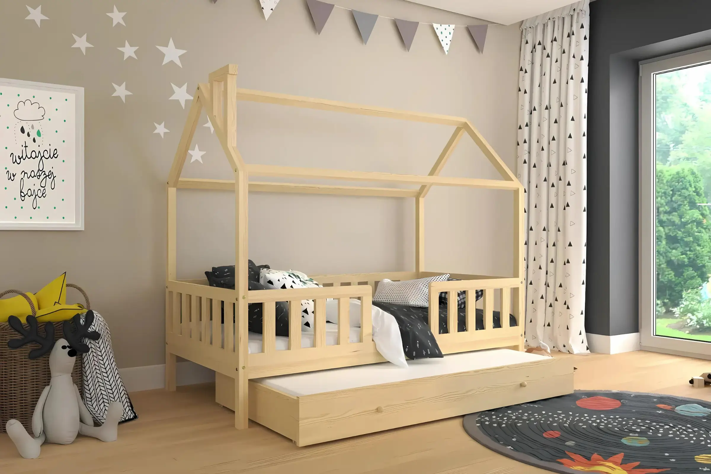 Unser Hausbett ROSI erfüllt die Träume fast jedes Kindes, wie auch der Erwachsenen. Das Hausbett bietet zahlreiche Gestaltungsmöglichkeiten und macht jedes Kinderzimmer zu einem echten Hingucker!. Das ROSI Kinderbett ist mit der zusätzlichen ausziehbaren Schlaffläche ausgestattet und ist eine ideale Lösung für Menschen, die Wert auf Funktionalität und modernes Design legen.