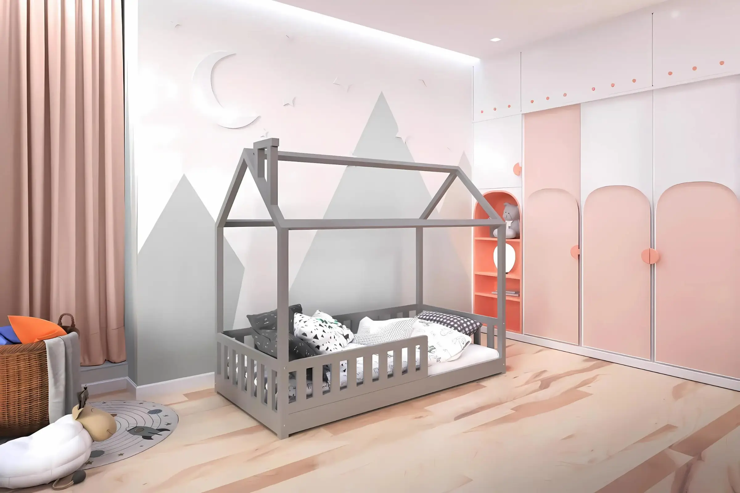 Das ROSI Bett wird aus nur hochqualitative Materialien europäischer Herkunft hergestellt. Das moderne Hausbett im skandinavischen Still schafft ein tolles Wohnambiente in jedem Kinderzimmer. Dank den stabilen Pfosten ist die Bettkonstruktion stabil. Das Hausbett wurde aus massivem Kiefernholz angefertigt und besticht durch seine sichtbare Holzstruktur und Wärme des Materials.