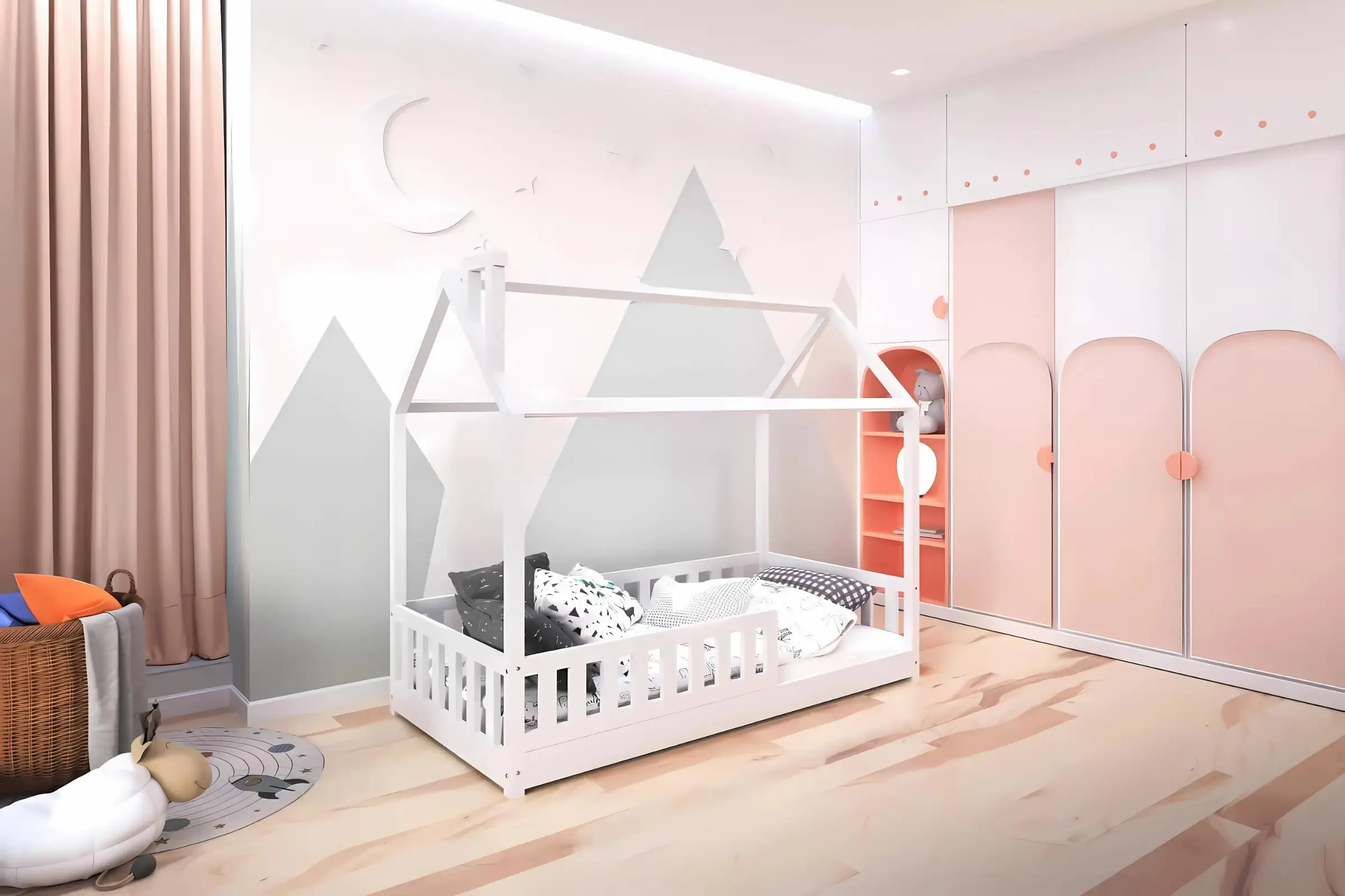 Das ROSI Bett wird aus nur hochqualitative Materialien europäischer Herkunft hergestellt. Das moderne Hausbett im skandinavischen Still schafft ein tolles Wohnambiente in jedem Kinderzimmer. Dank den stabilen Pfosten ist die Bettkonstruktion stabil. Das Hausbett wurde aus massivem Kiefernholz angefertigt und besticht durch seine sichtbare Holzstruktur und Wärme des Materials.