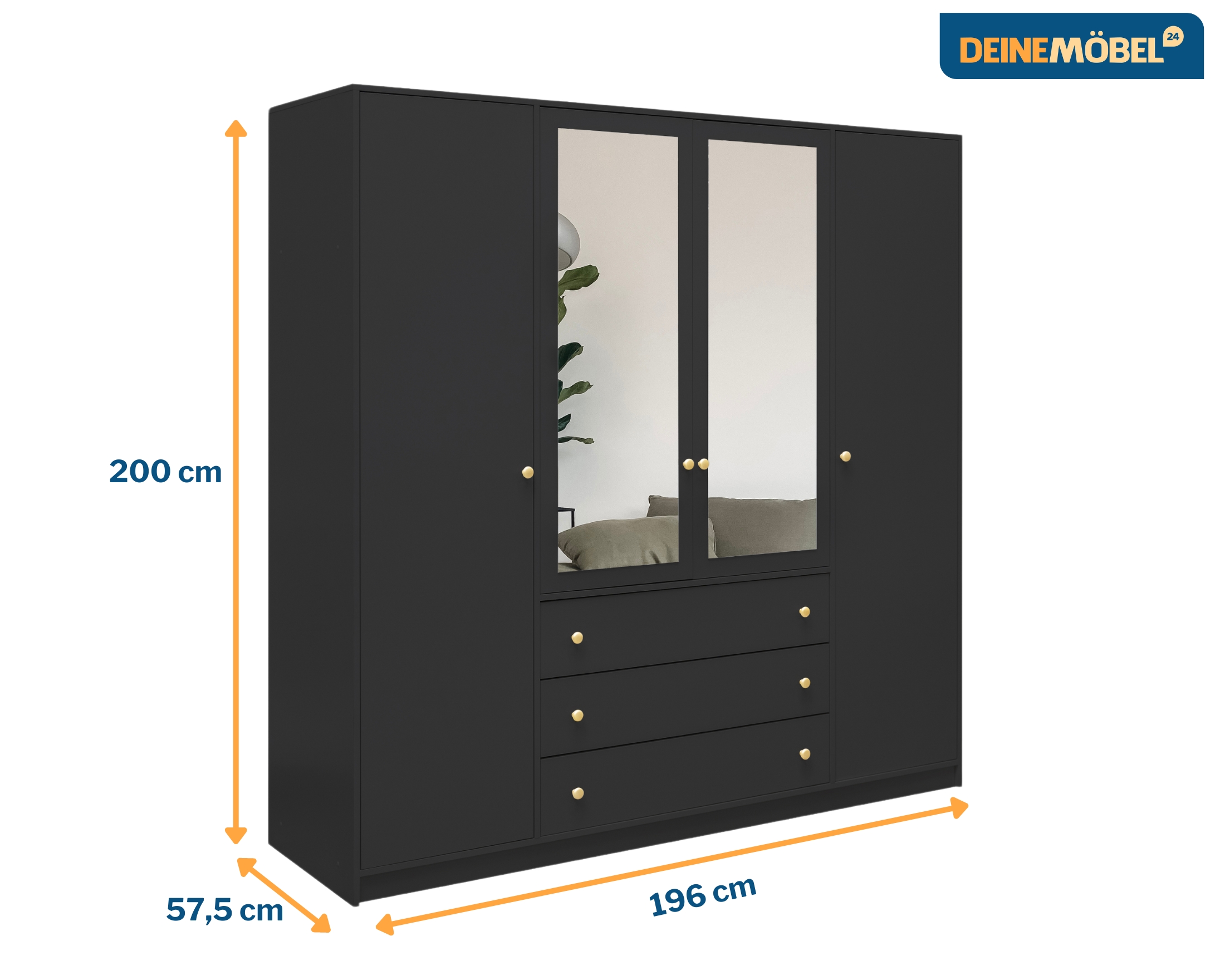 - Kleiderschrank: B 196 x H 200 x T 57,5 cm