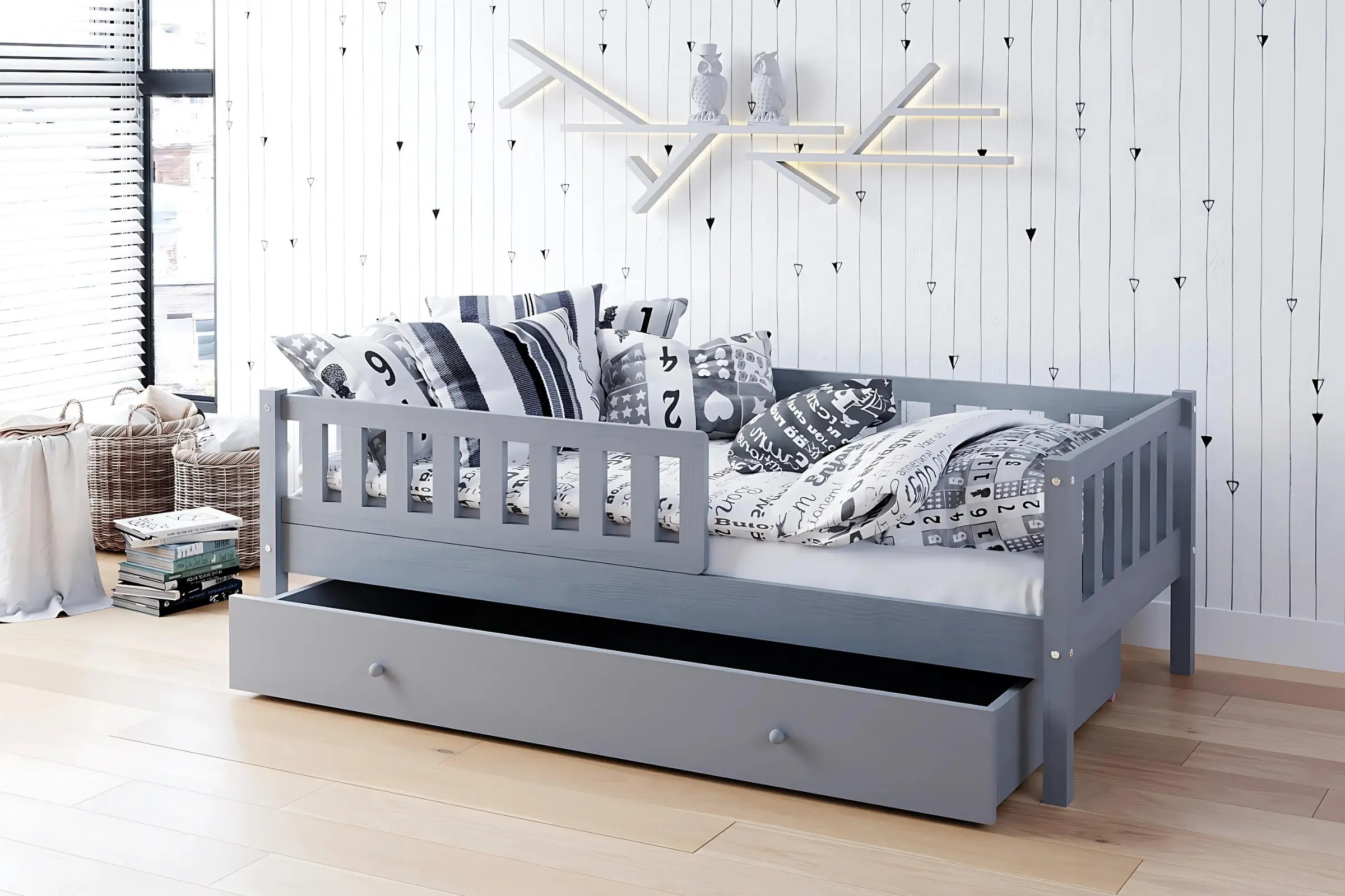 SOPHIA 90x200 Grau Kinderbett mit einer Schublade Deine Möbel