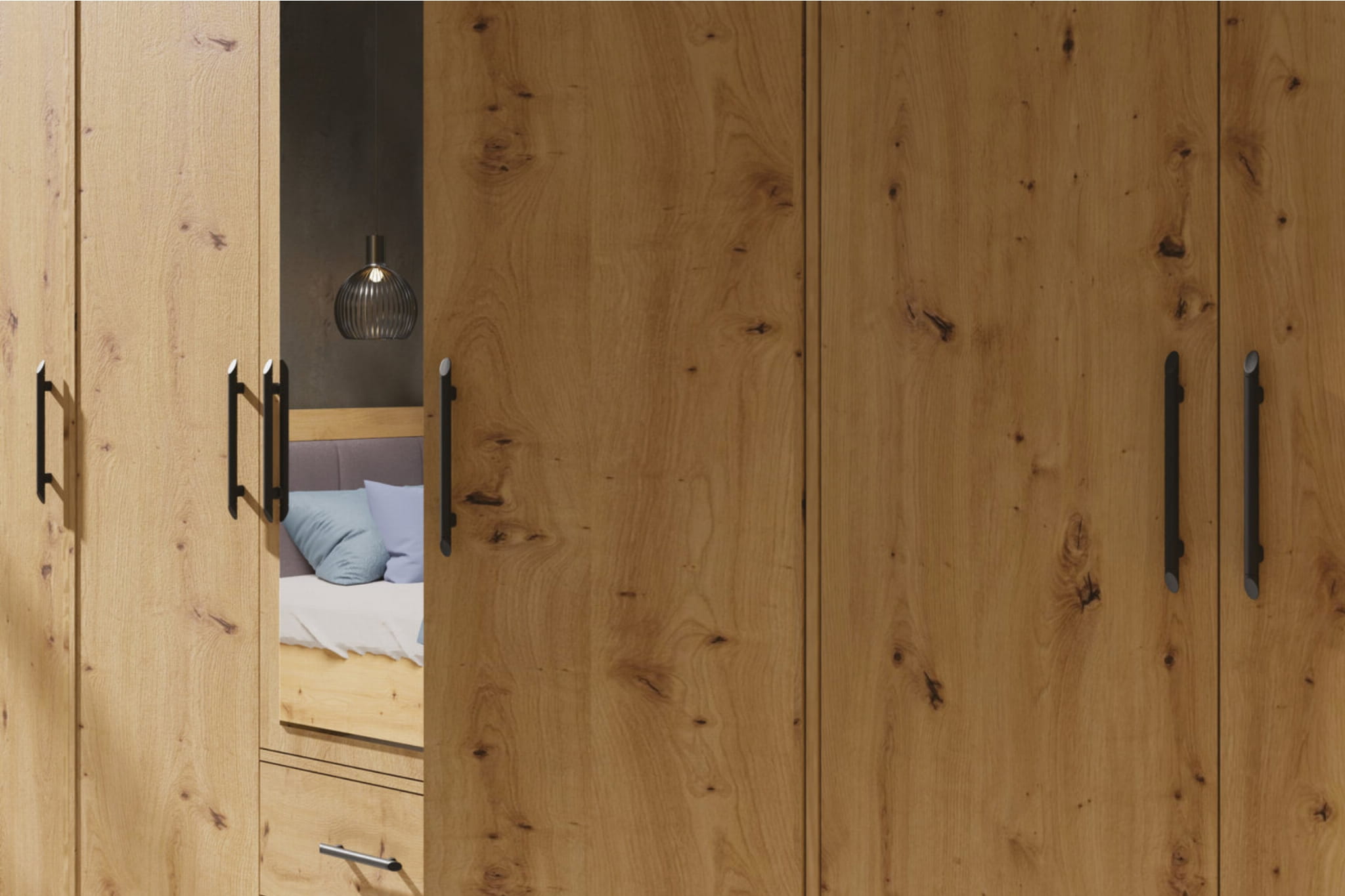 Schlafzimmer-Set SAM A Schlafzimmer Schrank SRL1 Kommode SRK1 Bett SR6 Nachttisch SR7, 5-tlg., Eiche Artisan Deine Möbel