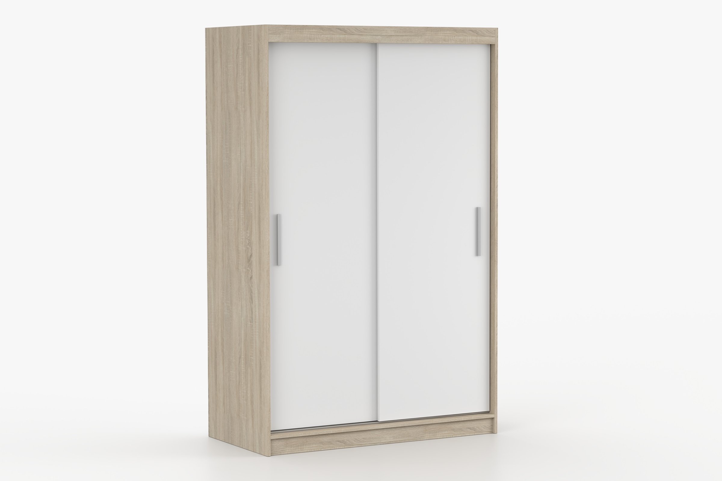 - Kleiderschrank 04: 120 x 200 x 61 cm – mit Schiebetüren, Aluminiumgriff, Kleiderstange und geräumigen Fächern