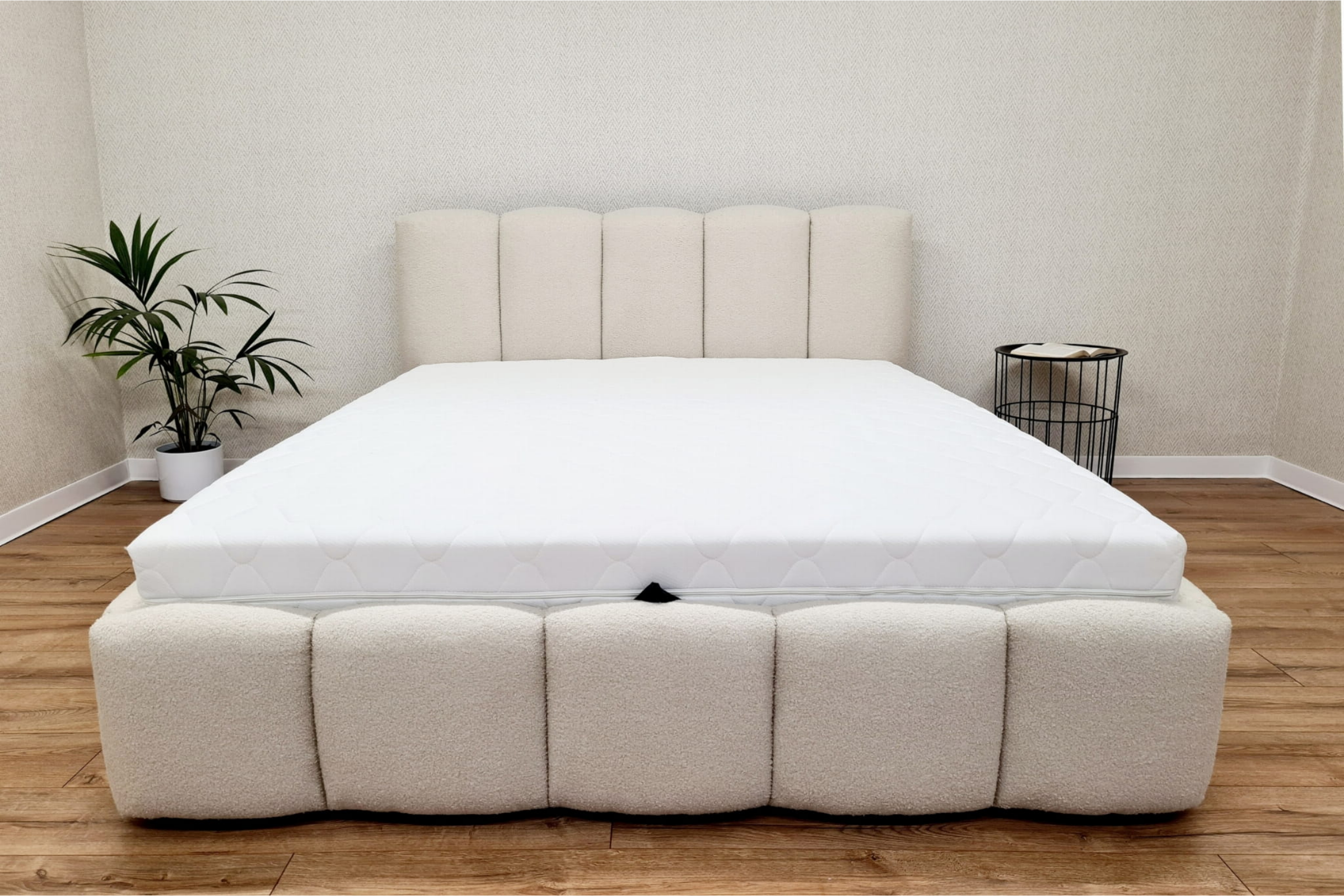 - Hochwertiger Bouclé-Stoff: Der weiche, trendige Stoff sorgt für ein besonders angenehmes Schlafgefühl und passt perfekt in moderne Schlafzimmer.