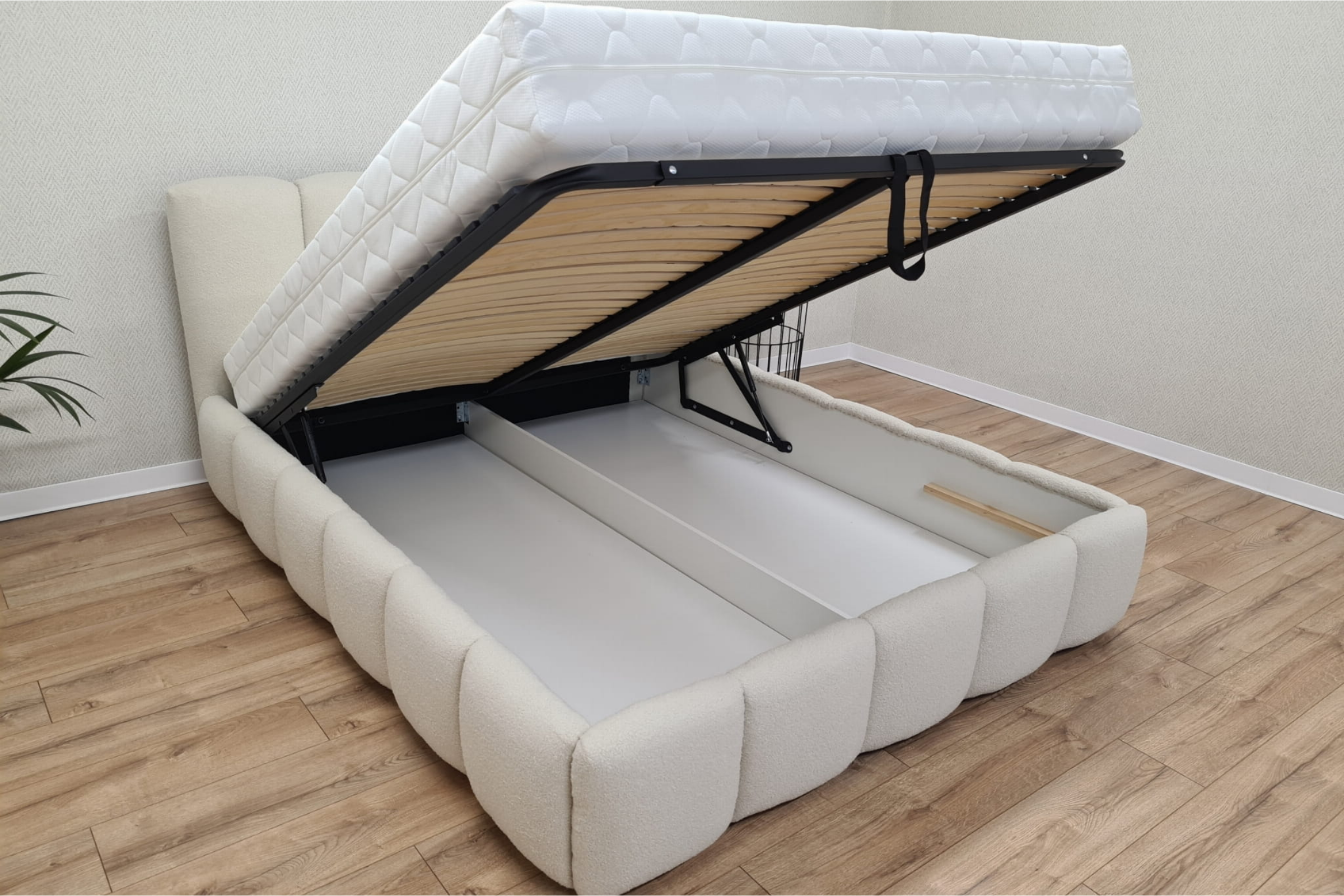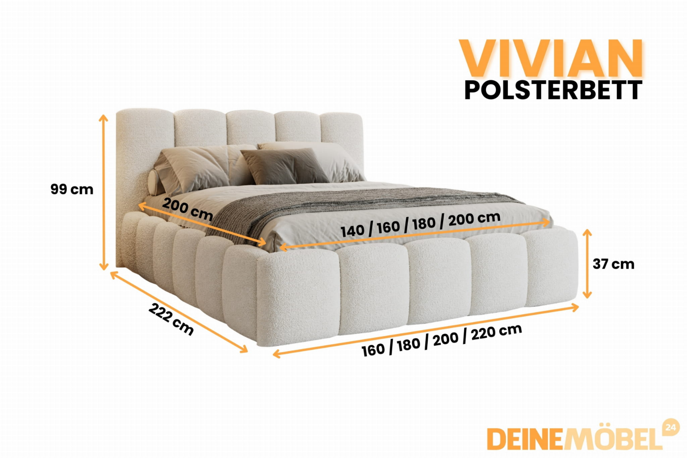 VIVIAN nagelneu 140x200 Boucle Quelle 03 Creme Polsterbett mit Bettkasten und Lattenrost Bouclé Deine Möbel
