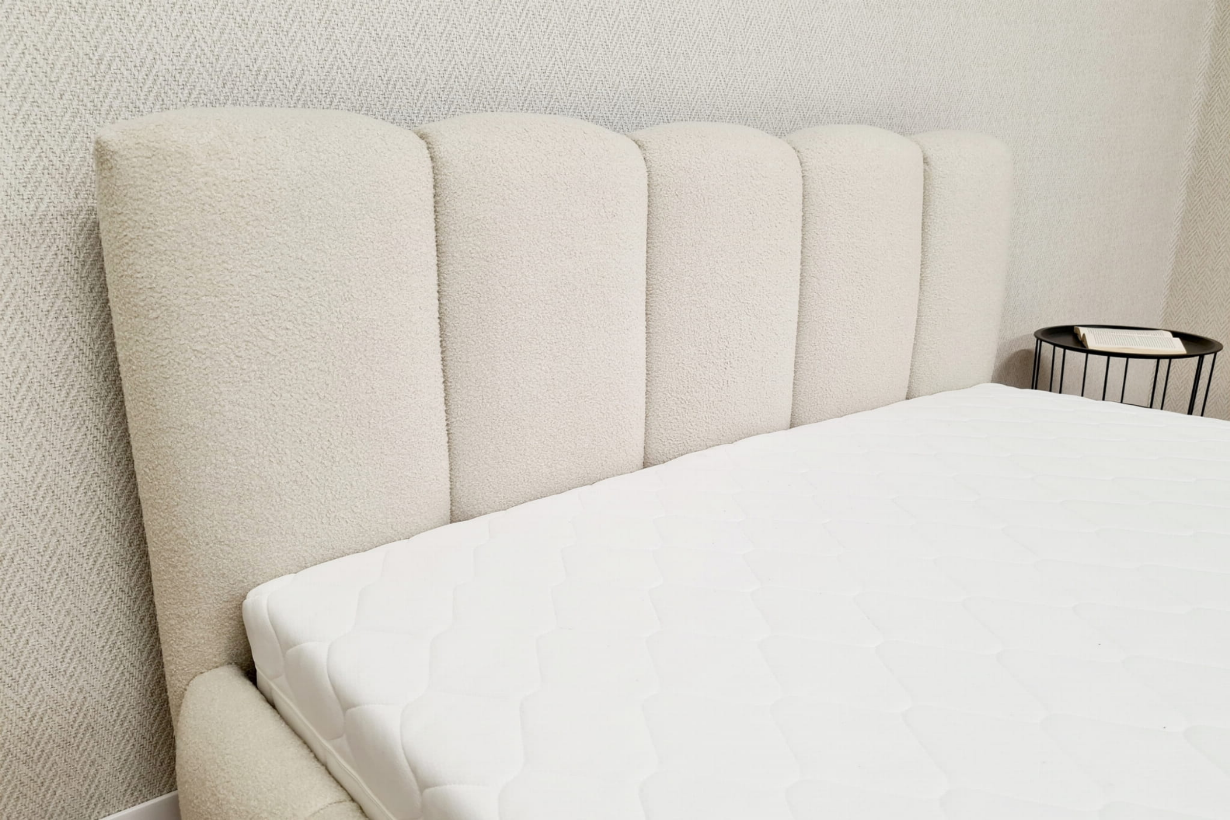 - Hochwertiger Bouclé-Stoff: Der weiche, trendige Stoff sorgt für ein besonders angenehmes Schlafgefühl und passt perfekt in moderne Schlafzimmer.